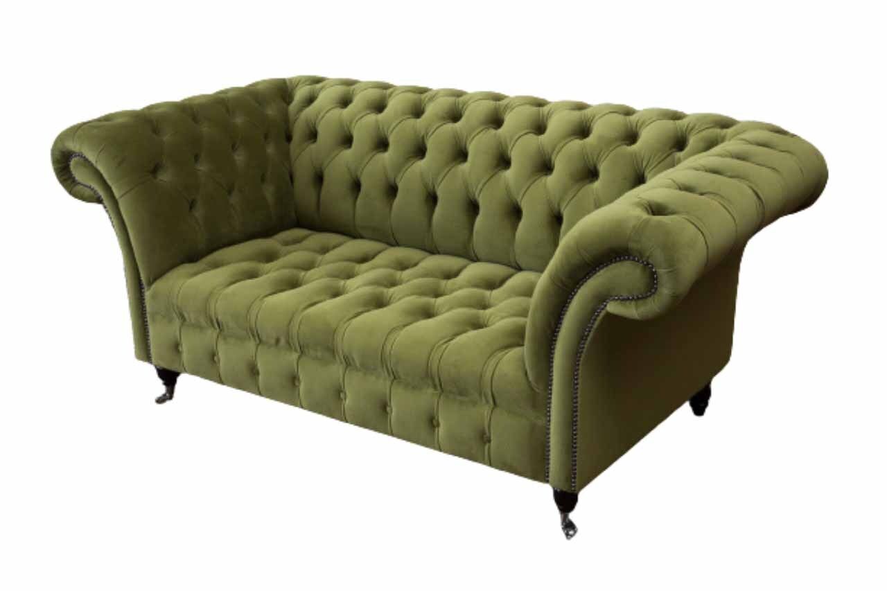 Sofa 2 Sitzer Couch Polster Sofa Stoff Chesterfield Couchen Grün Neu
