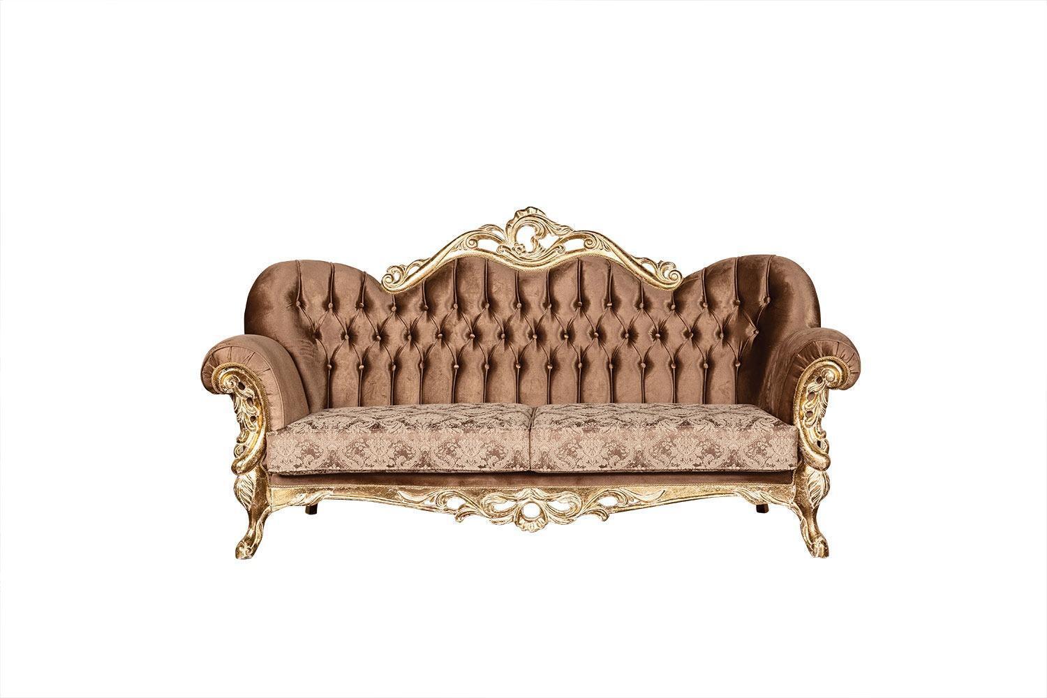 Goldene Samt Couch Set Chesterfield Sofagarnitur Sofa Möbel Holz 5tlg