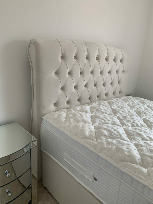 Großes beiges Chesterfield Doppelbett Luxus Moderne Betten