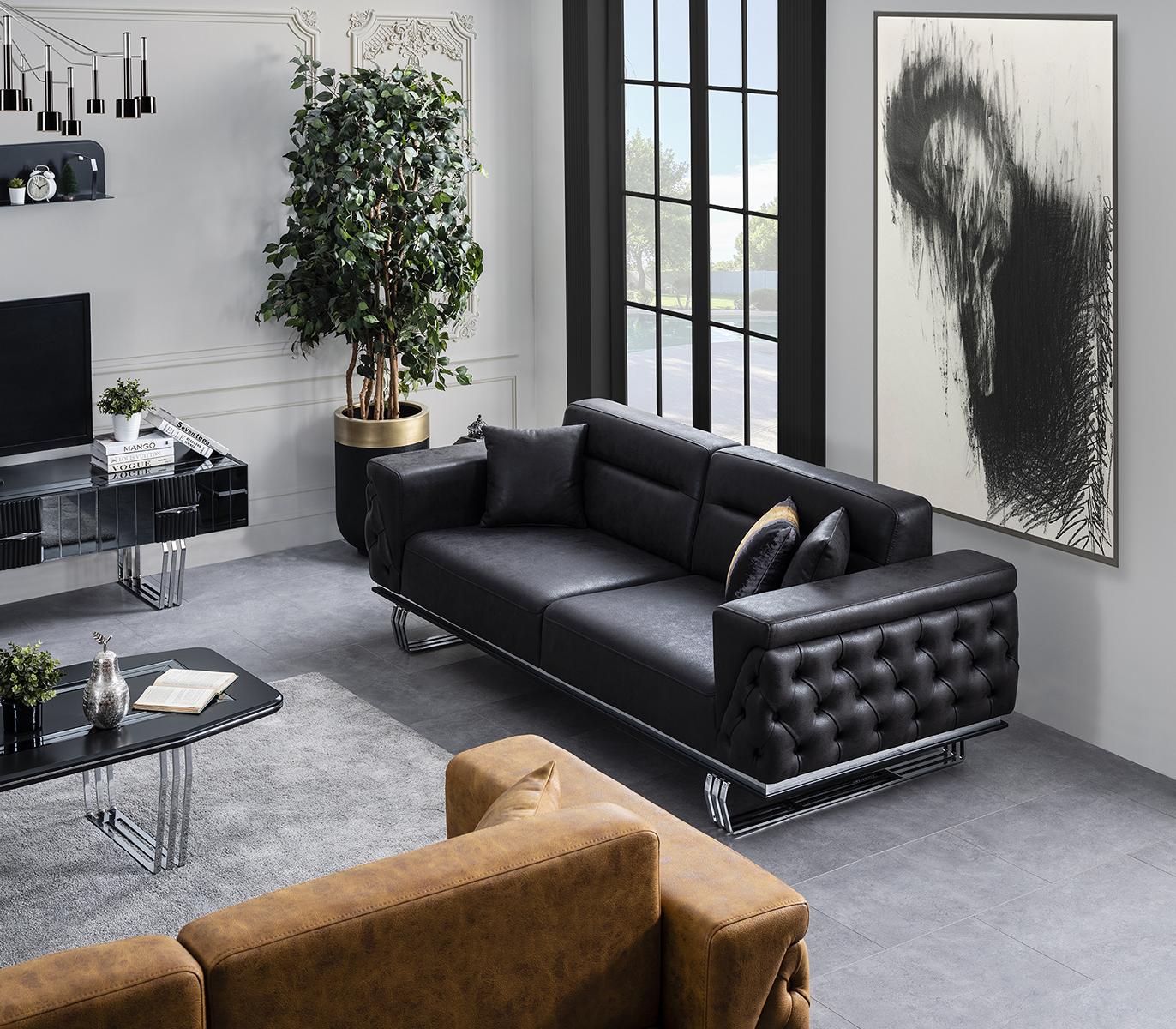 Sofagarnitur Komplette Sofa 41 Sitz Sessel Kunstleder Schwarz Set 2tlg