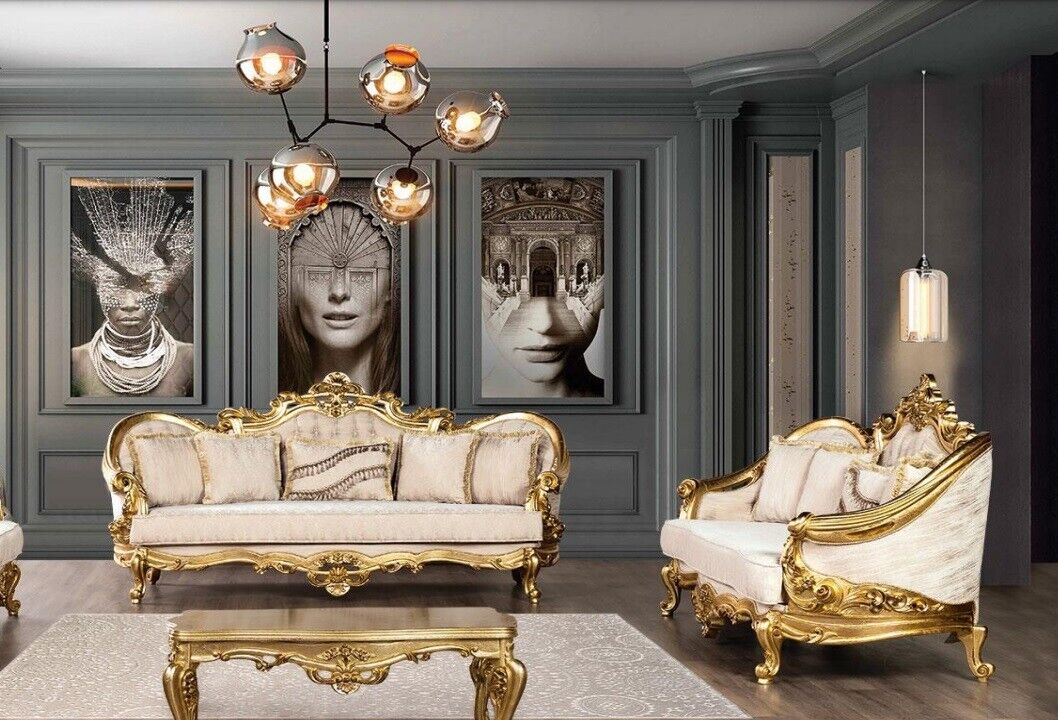 Luxus Sofagarnitur 3+3 Sitzer Sessel Sofas Set Stoff Barock Sitz Gruppe Garnitur