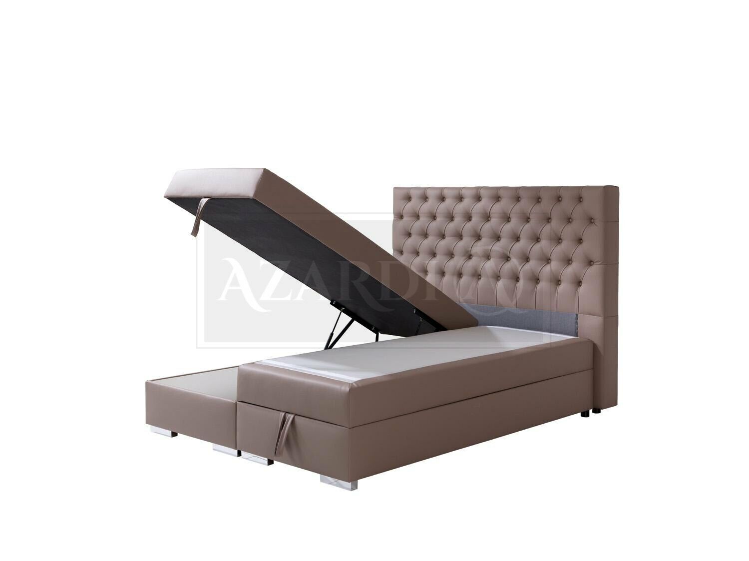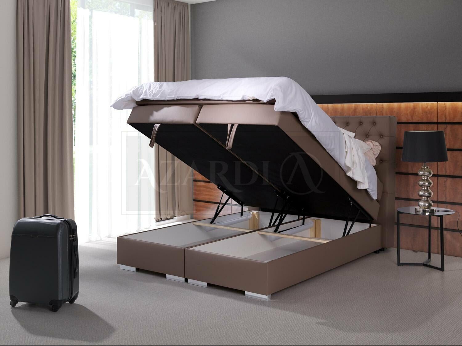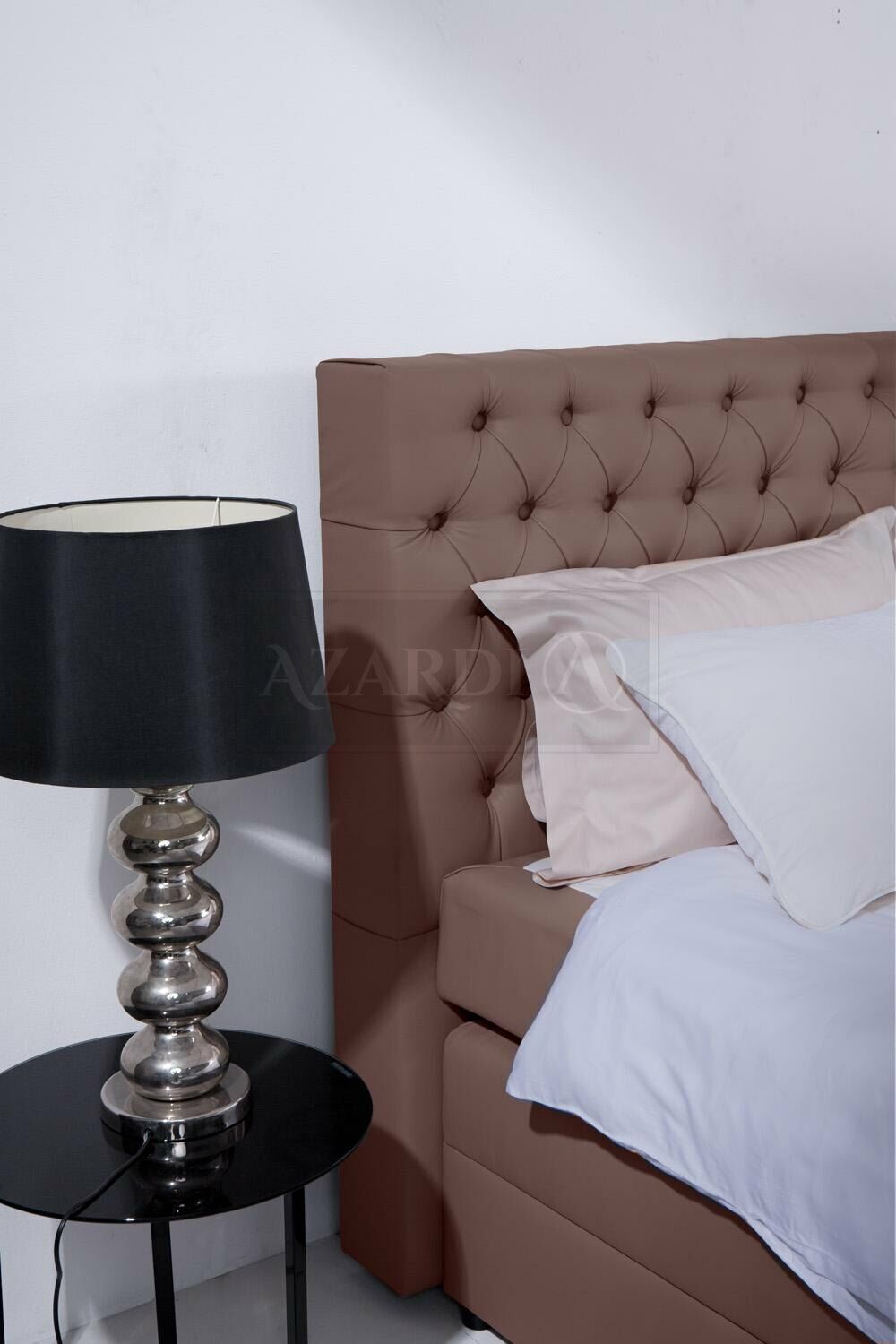 Bringen Sie Luxus in Ihr Schlafzimmer mit unserem exquisiten Luxus Schlafzimmer Bett im Polster Design. Dieses Luxus Doppel Hotel Bett im Chesterfield-Stil wird aufwendig gefertigt und bietet Ihnen die Möglichkeit, aus einer Vielzahl von Farben und Materialien zu wählen. Ob Samt, Velours, Kunstleder oder Leder - wir fertigen Ihr Traumbett ganz nach Ihren Wünschen. Die Maße sind flexibel wählbar, und Sie haben optional im Shop die Möglichkeit, Matratze, Lattenrost sowie ein Hebesystem mit Bettkasten dazu zu erwerben. Die Farbauswahl und Materialien reichen von Premium Kunstleder und Stoff der Gruppe 1 bis hin zu exklusivem Echtleder aus Italien. Zudem können Sie zwischen verschiedenen Textillieferanten wählen, um Ihr Bett bis ins Detail zu personalisieren. Das Bett verfügt über ein Innengestell aus echtem Holz, und als besonderes Highlight können Sie zwischen Kristallsteinen oder klassischen Knöpfen für die Verzierung wählen. Bringen Sie den Glanz von echten Swarovski Kristallsteinen in Ihr Schlafzimmer und lassen Sie sich vom Luxus unserer Luxus Doppel Hotel Betten begeistern. Gönnen Sie sich erholsame Nächte in einem Bett, das Eleganz und Komfort vereint.