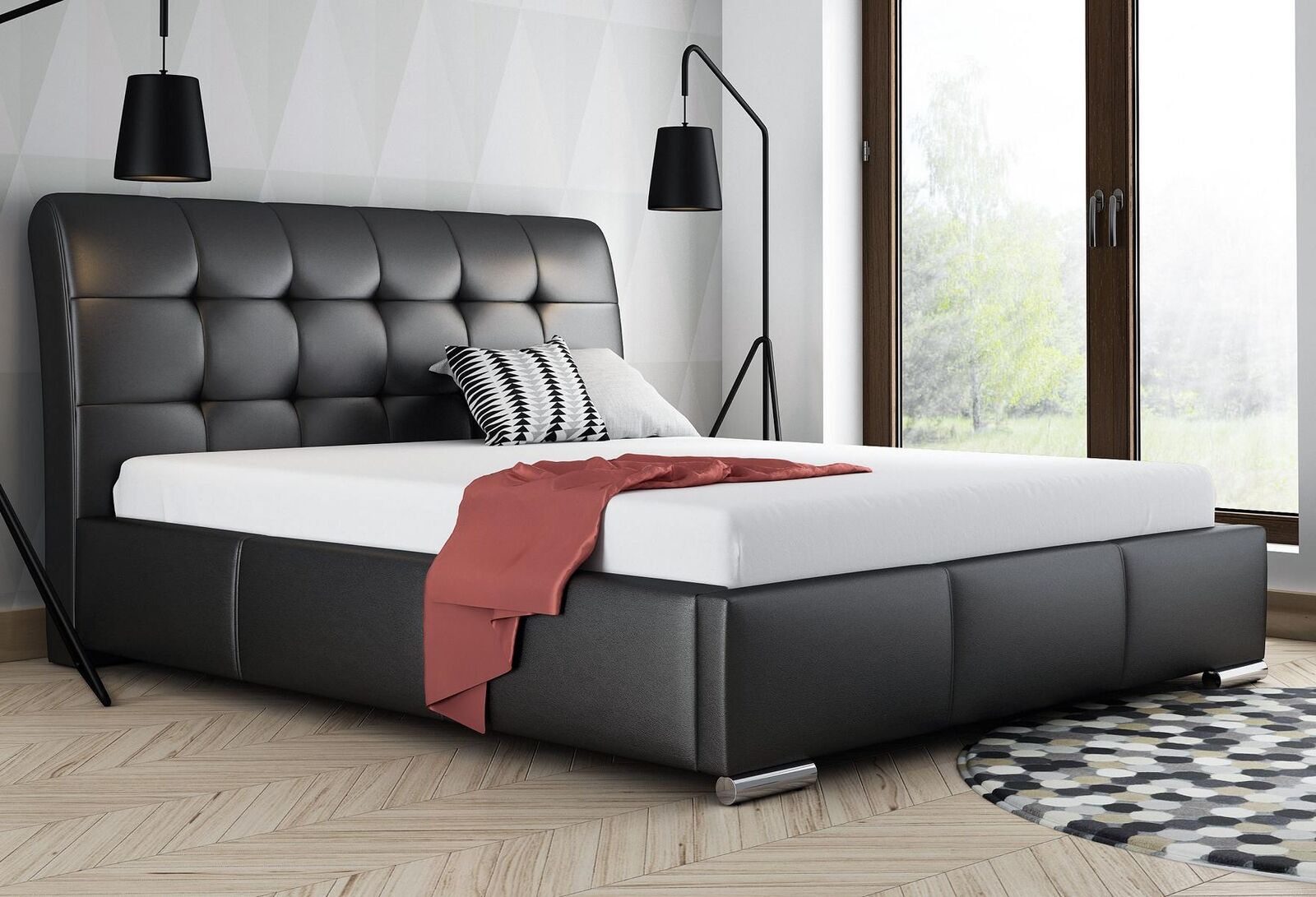 Auf der Suche nach dem ultimativen Bett für Ihr Schlafzimmer? Dann ist dieses Luxus Möbel Bett mit einem modernen Design und einer Liegefläche von ca. 160 x 200 cm die perfekte Wahl! Das Bett hat eine Breite von ca. 177 cm, eine Länge von ca. 227 cm und eine Höhe von ca. 103 cm. Genießen Sie den Komfort einer nach hinten gebogenen, gesteppten Kopfstütze mit 5 cm Schaumstoffpolsterung. Der Metallrahmen verfügt über 34 belastbare/flexible Lamellen und einen Gaslift mit 1000N. Wählen Sie zwischen einem Bett mit oder ohne Bettkasten. Sie haben außerdem die Möglichkeit, die Liegefläche in verschiedenen Größen zu bestellen: ca. 120 x 200 cm, ca. 140 x 200 cm, ca. 180 x 200 cm oder ca. 200 x 200 cm. Die Farbe und das Material können Sie frei wählen - entweder Stoff oder Premium Kunstleder der Gruppe I (ohne Aufpreis) oder Gruppe II (+ 149,00 Euro). Im Lieferumfang enthalten ist das Bett, optional können Sie einen Bettkasten (+ 299,00 Euro) oder eine Matratze (+ 349,00 Euro) hinzufügen. Holen Sie sich jetzt dieses luxuriöse Bett für erholsame Nächte in Ihrem modernen Schlafzimmer!