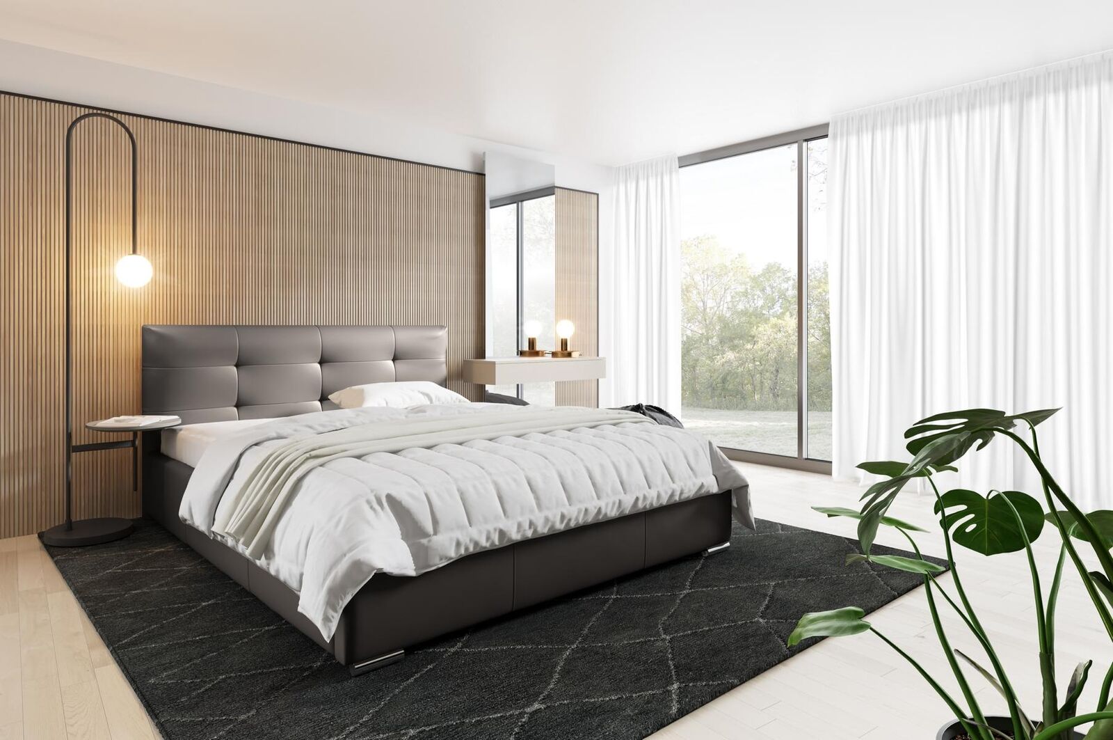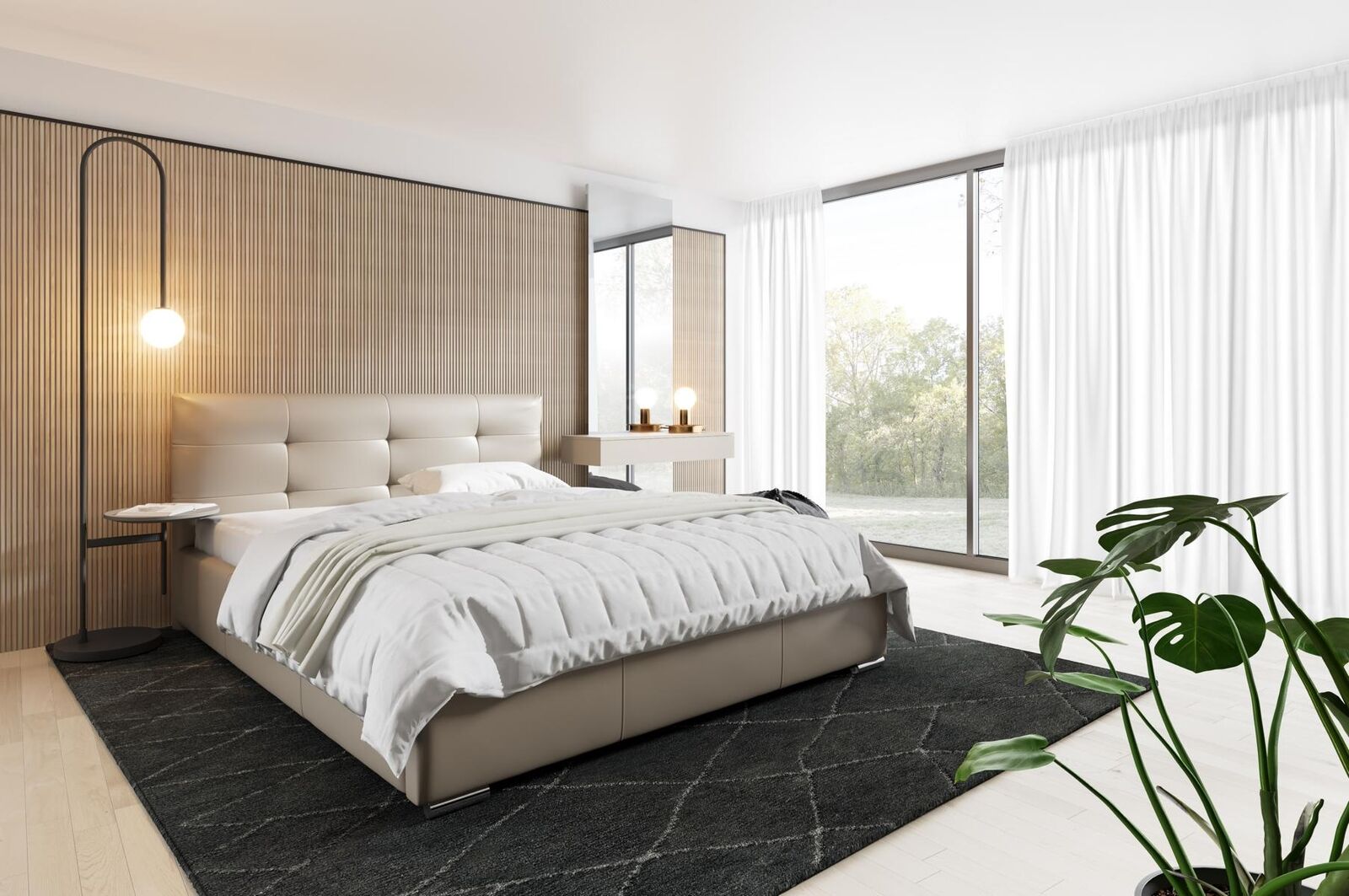 Entdecken Sie das Luxus Möbel Design Doppel Hotel Modern Bett für Ihr Schlafzimmer! Dieses elegante Bett besticht durch seine Maße von ca. 180 x 200 cm und einer Höhe von ca. 100 cm. Die gerade Kopfstütze ist mit 3 cm Schaumstoff gepolstert und der Metallrahmen verfügt über 34 belastbare/flexible Lamellen. Mit dem Gaslift 1000N und der Möglichkeit der Auswahl mit oder ohne Bettkasten bietet dieses Bett höchsten Komfort und Funktionalität. Sie haben die Freiheit, die Liegefläche in verschiedenen Größen wie 120 x 200 cm, 140 x 200 cm, 160 x 200 cm oder 200 x 200 cm zu wählen. Die Farbe und das Material des Bettes sind ebenfalls frei wählbar, entweder aus Stoff oder Premium Kunstleder der Gruppe I oder Gruppe II gegen Aufpreis (+ 149,00 Euro). Im Lieferumfang enthalten ist das Bett, aber Sie haben auch die Möglichkeit, einen Bettkasten (+ 299,00 Euro) oder eine Matratze (+ 349,00 Euro) optional dazuzubestellen. Gönnen Sie sich mit diesem modernen Bettrahmen einen erholsamen Schlaf in luxuriösem Design!