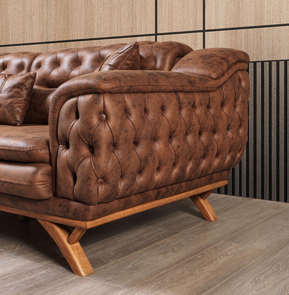 Entdecken Sie unsere exklusive Sofagarnitur 3+3+1 Sitzer Möbel Set! Dieses Design-Sofa im Chesterfield-Stil aus hochwertigem Kunstleder bietet nicht nur Komfort, sondern auch Eleganz für Ihr Zuhause. Die Garnitur besteht aus zwei 3-Sitzern und einem Sessel, perfekt für gemütliche Abende allein oder mit Gästen. Die Maße sind wie folgt: - 2x 3-Sitzer: ca. 232 x 100 x 82 cm - Sessel: ca. 70 x 84 x 92 cm - Sitzhöhe: ca. 44 cm - Sitztiefe: ca. 56 cm In der Farbe wie abgebildet verleiht dieses Sofa Ihrem Wohnzimmer eine zeitlose Schönheit. Das Kunstledermaterial ist nicht nur pflegeleicht, sondern auch langlebig. Bei Interesse an einer anderen Farbe oder Materialien wie Samt, Velours, Polyester oder sogar echtem Leder kontaktieren Sie uns gerne! Bringen Sie Stil in Ihr Zuhause und genießen Sie die Flexibilität, die dieses Möbelset bietet. Bestellen Sie Ihre individuelle Garnitur noch heute und machen Sie Ihr Wohnzimmer zur Wohlfühloase!