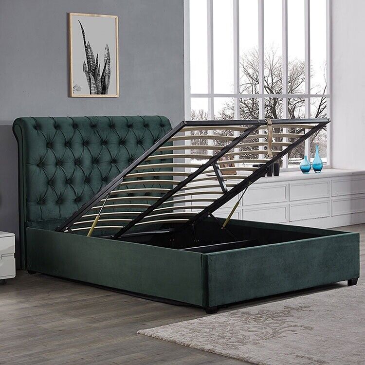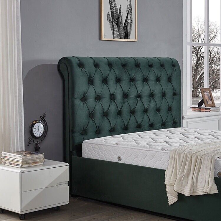 Modernes grünes Chesterfield Doppelbett Designer Luxus Betten
