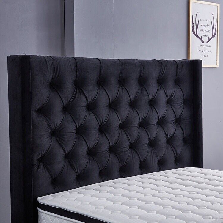 Modernes schwarzes Chesterfield Luxus Bett Textil Doppelbetten