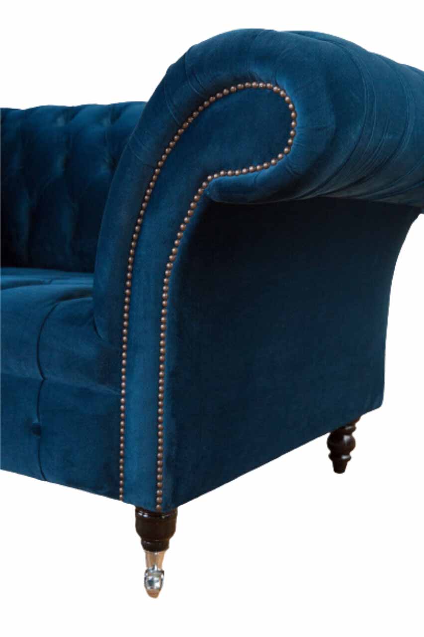 Chesterfield Sessel Design Polster Sofa Couch Blau Textil Möbel