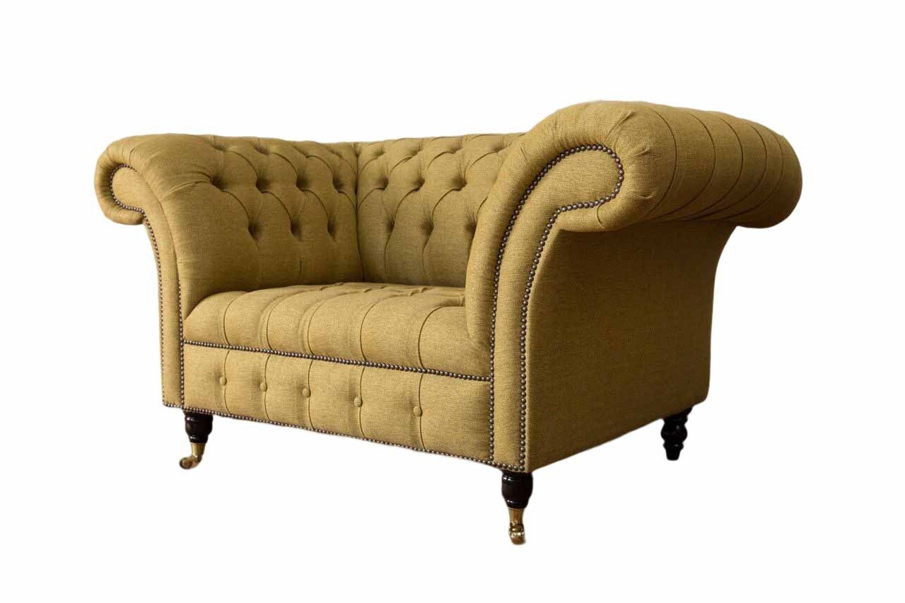 Chesterfield Sessel Design Polster Sofa Couch Braun Textil Möbel Neu