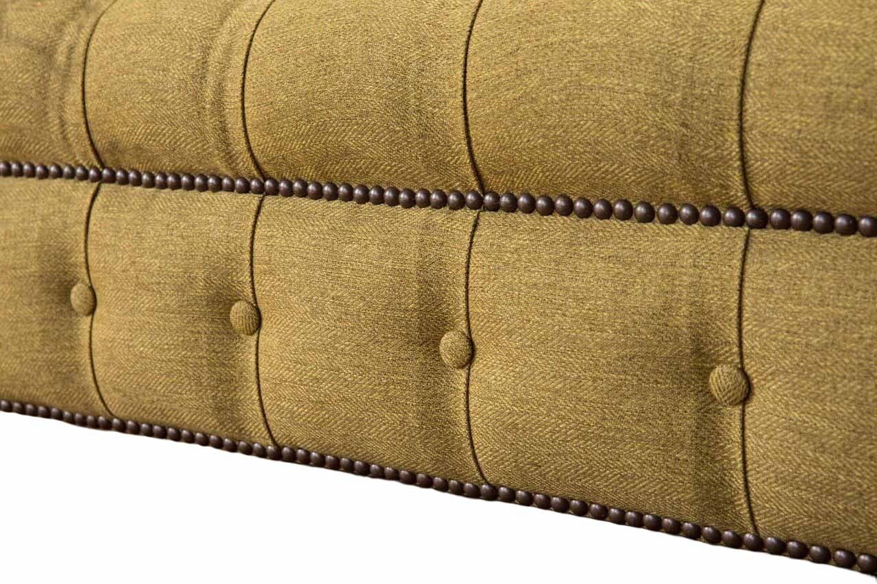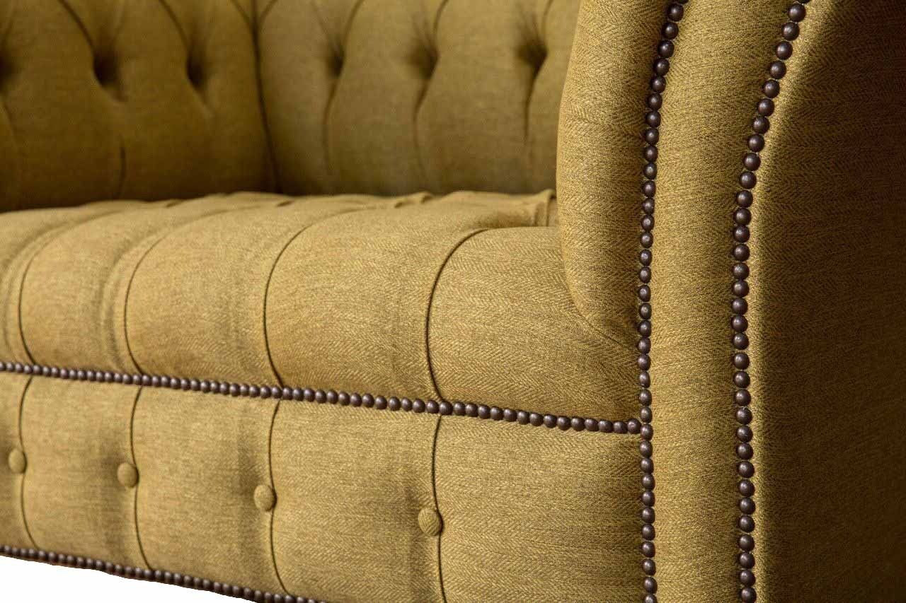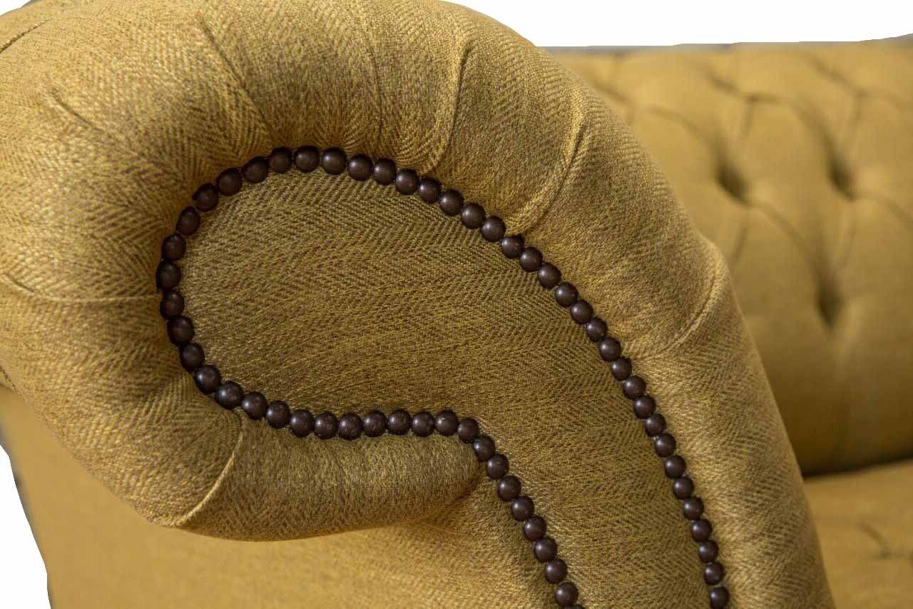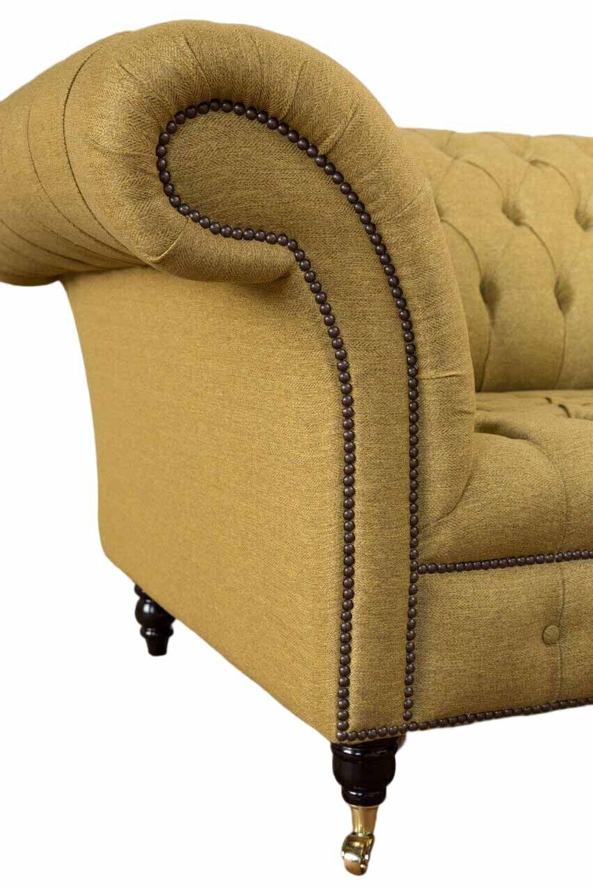Entspannen Sie in Stil und Komfort mit unserem Chesterfield Sessel Design Polster Sofa Couch in Braun! Hergestellt aus hochwertigem Textil und echtem Holz, sorgt dieser Sessel für Gemütlichkeit in Ihrem Zuhause. Die Maße von ca. 130 x 80 x 90 cm bieten ausreichend Platz, um sich zurückzulehnen und zu entspannen. Mit einer freien Farbwahl und verschiedenen Materialoptionen wie Premium Kunstleder, Echtleder oder Premium Samt Stoff, können Sie den Sessel ganz nach Ihren Wünschen gestalten. Optional sind auch Fleckenabweisender Stoff oder die Verwendung von Kristallsteinen für eine luxuriöse Optik verfügbar. Das Innengestell aus echtem Holz und der Federkern sorgen für Stabilität und Komfort. Bestellen Sie jetzt Ihren neuen Lieblingssessel und wählen Sie zwischen verschiedenen Größen wie 5-Sitzer, 4-Sitzer, 3-Sitzer, 2-Sitzer oder 1-Sitzer. Sondergrößen oder Maßanfertigungen sind auf Anfrage möglich. Gönnen Sie sich diesen zeitlosen Klassiker für Ihr Zuhause!