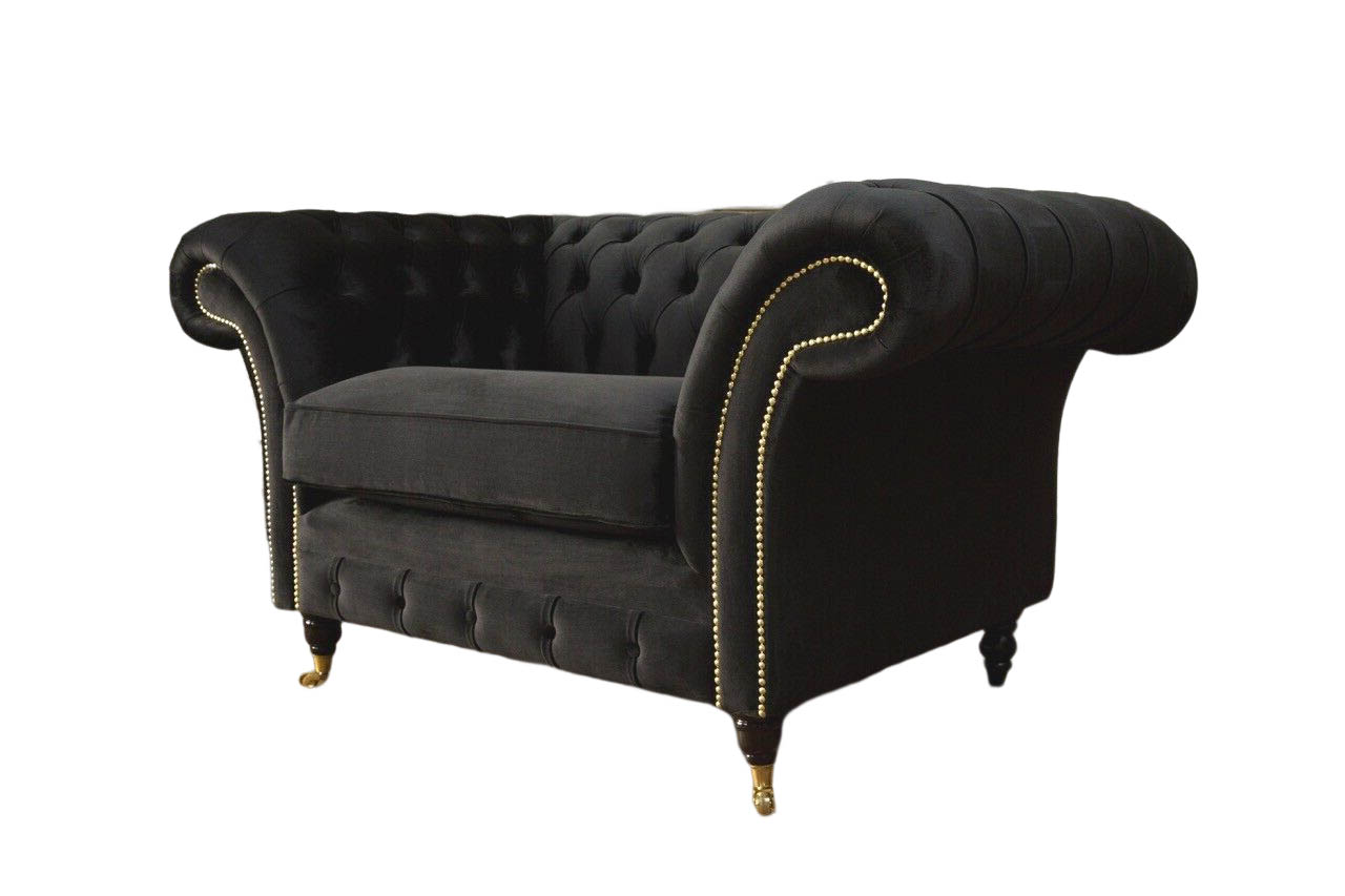 Chesterfield Sessel Lounge Schwarz Sofa Couch Polster Modern Textil Neu