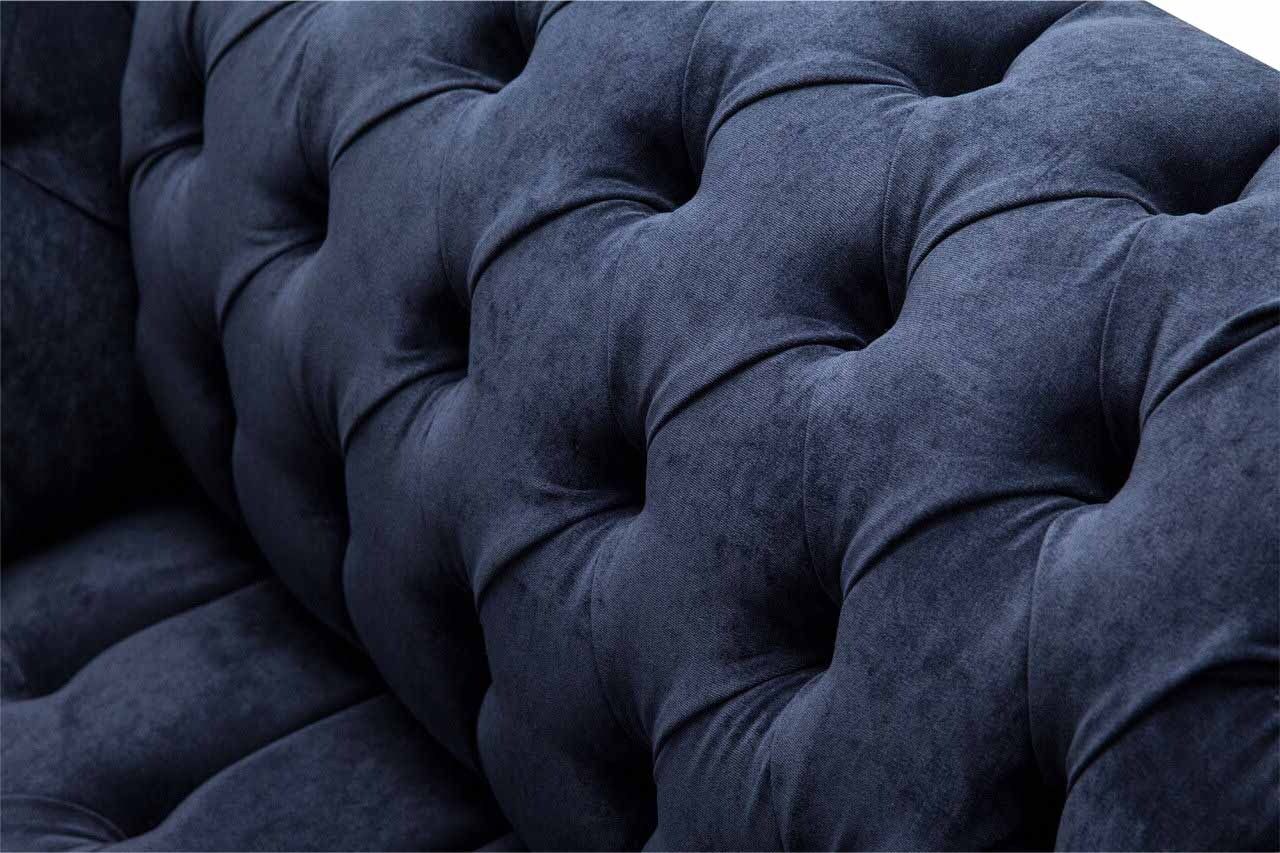 Entspannen Sie stilvoll mit unserem Chesterfield Sofa 1,5 Sitzer! Dieses Designer-Couchen ist ein echtes Highlight in Ihrem Wohnzimmer. Mit Maßen von ca. 150 x 80 x 90 cm bietet es ausreichend Platz zum gemütlichen Zurücklehnen. Die Sitzhöhe beträgt ca. 42 cm und die Sitztiefe ca. 52 cm - perfekt für entspannte Stunden. Wählen Sie Ihre Lieblingsfarbe frei aus und entscheiden Sie sich optional für hochwertiges Premium-Kunstleder/Stoff, Premium-Echtleder aus Italien, Premium-Samtstoff oder den fleckenabweisenden Magic Home Stoff. Die Möglichkeiten sind vielfältig und passen sich ganz nach Ihren Wünschen an. Unser Chesterfield Sofa besticht nicht nur durch sein elegantes Design, sondern auch durch die hochwertigen Materialien. Das Innengestell besteht aus echtem Holz und bietet dank Federkern höchsten Sitzkomfort. Gestalten Sie Ihr Chesterfield Sofa ganz nach Ihrem Geschmack! Entdecken Sie auch weitere Größen wie 5-Sitzer, 4-Sitzer, 3-Sitzer oder Sondergrößen auf Anfrage erhältlich. Verleihen Sie Ihrem Sofa eine persönliche Note mit echten Swarovski Kristallsteinen oder entscheiden Sie sich für klassische Knöpfe - ganz nach Ihrem Stil. Erleben Sie Luxus und Komfort mit unserem Chesterfield Sofa!