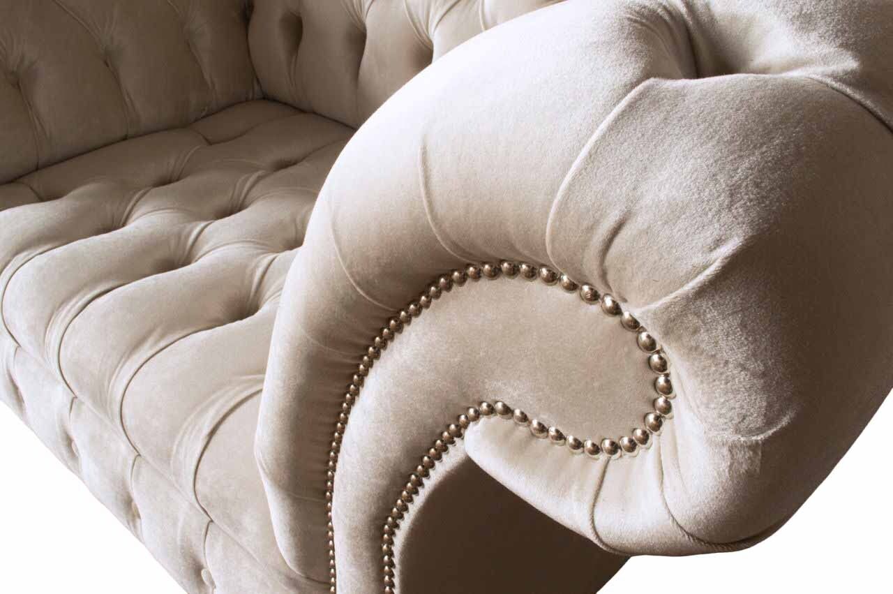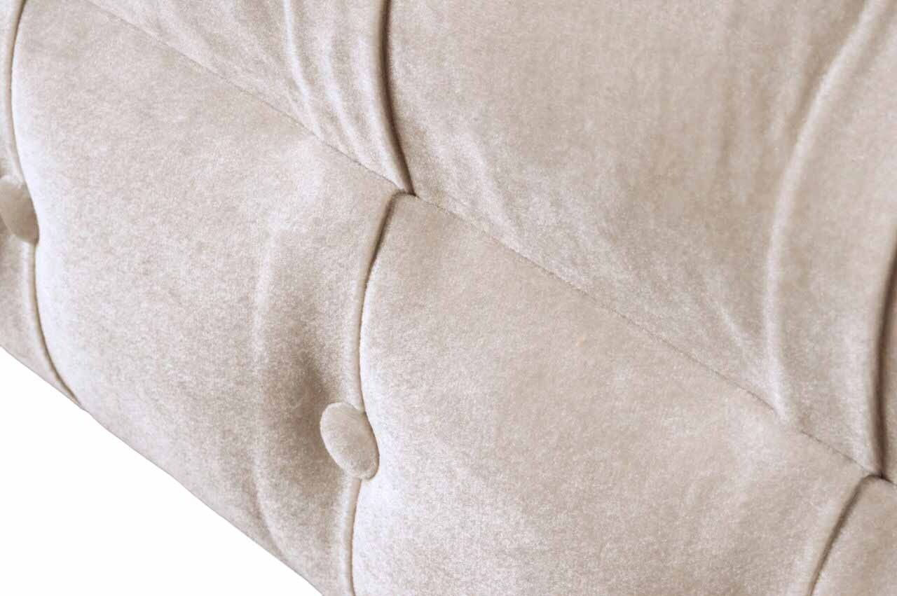 Entspannen Sie stilvoll und komfortabel auf unserer Chesterfield Couch in Rosa! Mit Maßen von ca. 150 x 80 x 90 cm bietet das 1,5-Sitzer Sofa genügend Platz zum Verweilen. Die Sitzhöhe beträgt ca. 42 cm und die Sitztiefe ca. 52 cm, perfekt zum Entspannen nach einem langen Tag. Das Sofa besteht aus hochwertigem Textil und Holz und kann ganz nach Ihren Wünschen angepasst werden. Wählen Sie aus einer Vielzahl von Farben und Materialien wie Premium Kunstleder, Echtleder, Samtstoff oder dem Fleckenabweisenden Magic Home Stoff. Für ein luxuriöses Detail können Sie zwischen traditionellen Knöpfen, Kristallsteinen oder echten Swarovski Kristallen wählen. Das Innengestell besteht aus echtem Holz und ist mit einem Federkern ausgestattet, um maximalen Komfort zu bieten. Genießen Sie die Qualität und das elegante Design unserer Chesterfield Couch, die auch in Sondergrößen wie 5-Sitzer, 4-Sitzer oder als Maßanfertigung erhältlich ist. Gönnen Sie sich diesen stilvollen Hingucker für Ihr Zuhause und entspannen Sie in Luxus!