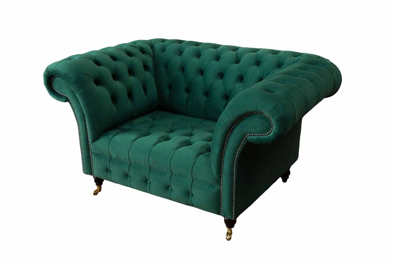 Grau Chesterfield Design Sofa Sessel Ohrensessel Polster Luxus Textil