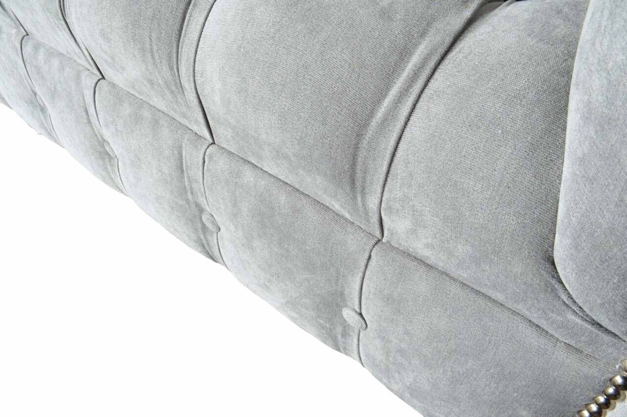 Entspannen Sie stilvoll mit unserem Grauen Chesterfield Ohrensessel im klassischen Design für Ihr Wohnzimmer. Hergestellt aus hochwertigem Textil und Holz, bietet dieser Sessel Komfort und Eleganz in einem. Die Maße von ca. 130 x 80 x 90 cm und eine Sitzhöhe von ca. 42 cm sorgen für eine gemütliche Sitzposition. Das Beste daran? Sie können die Farbe frei wählen und unter verschiedenen Materialoptionen wie Premium Kunstleder, Echtleder, Samtstoff oder Fleckenabweisendem Stoff auswählen. Optional bieten wir auch verschiedene Größen an, darunter 5-Sitzer, 4-Sitzer, 3-Sitzer, 2-Sitzer und 1-Sitzer. Für eine individuelle Note können Sie sogar eine Sondergröße oder Maßanfertigung anfragen. Mit echtem Holzgestell, Federkern und der Option zwischen klassischen Knöpfen, Kristallsteinen oder echten Swarovski Kristallsteinen als Verzierung, wird dieser Ohrensessel zu einem wahren Blickfang in Ihrem Zuhause. Schaffen Sie eine Wohlfühloase mit unserem Grauen Chesterfield Ohrensessel und genießen Sie entspannte Stunden in stilvollem Ambiente.