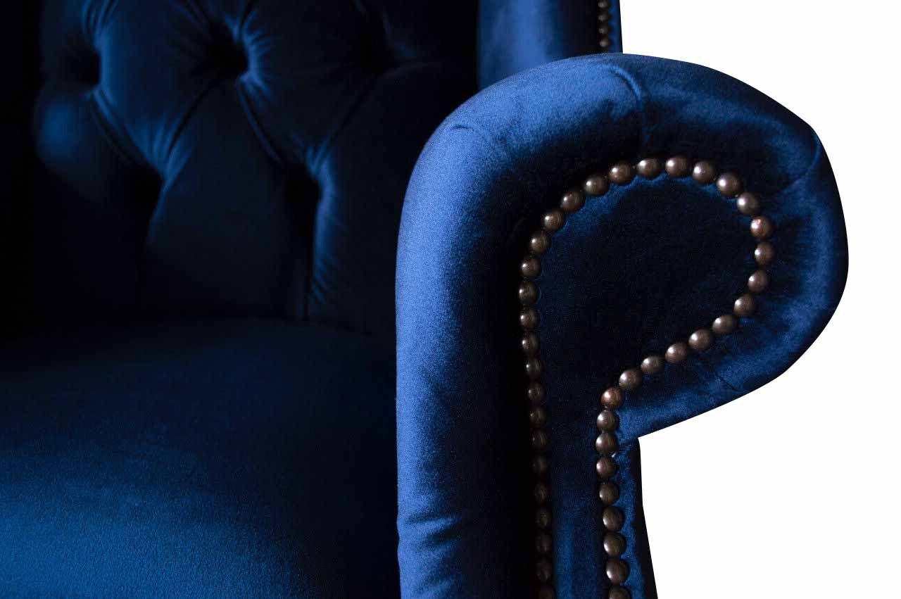 Ohrensessel Chesterfield Sofa Couch Polster 1 Sitzer Sessel Textil Blau