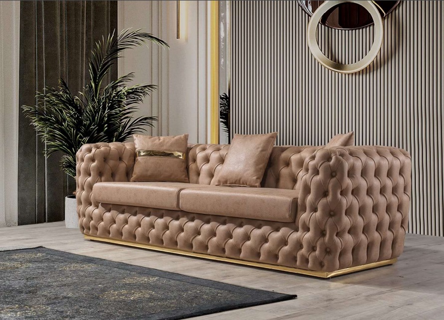 Willkommen in unserem Online-Shop! Entdecken Sie unsere exklusive Polstergarnitur Sofagarnitur 3+3 Sitzer Chesterfield Luxus Garnitur Sofas Leder. Dieses elegante Sofa bietet nicht nur höchsten Komfort, sondern auch ein luxuriöses Design, das jeden Raum aufwertet. Mit einer Länge von ca. 245 cm und einer Breite von ca. 98 cm bietet dieses 3+3 Sitzer Sofa aus Kunstleder ausreichend Platz für die ganze Familie oder Freunde. Das hochwertige Innengestell aus echtem Holz sorgt für Stabilität und Langlebigkeit. Die klassische Chesterfield-Optik in der abgebildeten Farbe verleiht diesem Sofa einen zeitlosen Charme. Zudem haben Sie die Möglichkeit, Ihre individuelle Traumcouch zu gestalten. Wählen Sie aus einer Vielzahl von Farben wie Braun, Grün, Schwarz, Blau, Rot oder Grau und verschiedenen Materialien wie Samt, Velours, Polyester oder natürlichem Leder. Verpassen Sie nicht die Gelegenheit, Ihr Wohnzimmer mit dieser Luxusgarnitur zu verschönern! Stellen Sie noch heute Ihre Anfrage und lassen Sie sich von unserer Qualität und Vielfalt überzeugen.