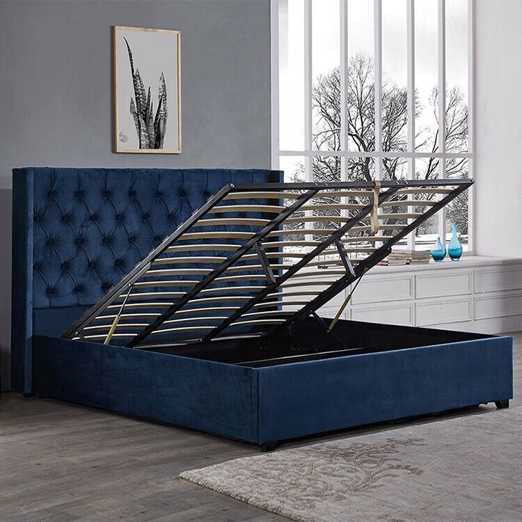 Royales Blaues Schlafzimmer Bett Polster Doppelbetten Chesterfield Design