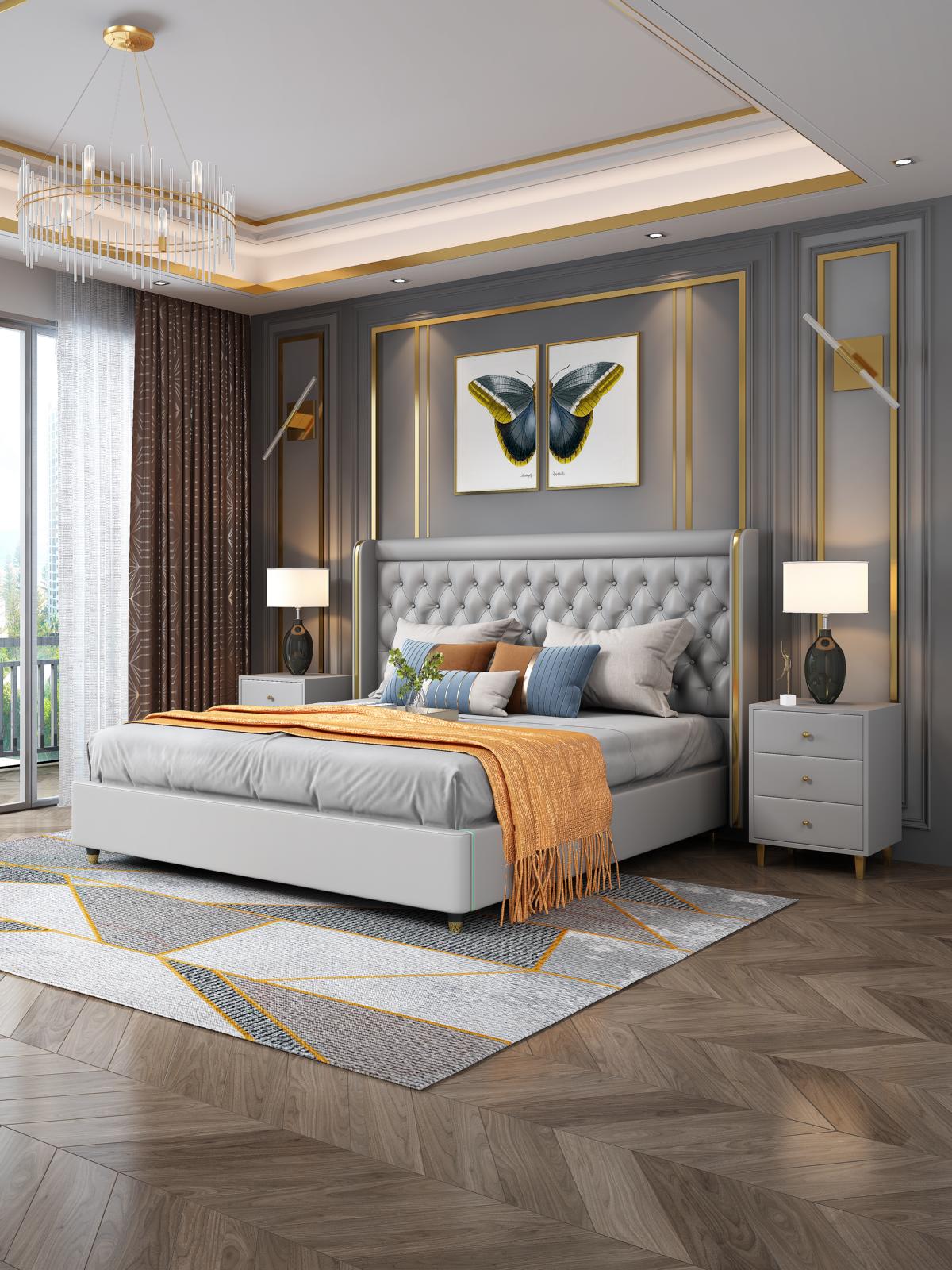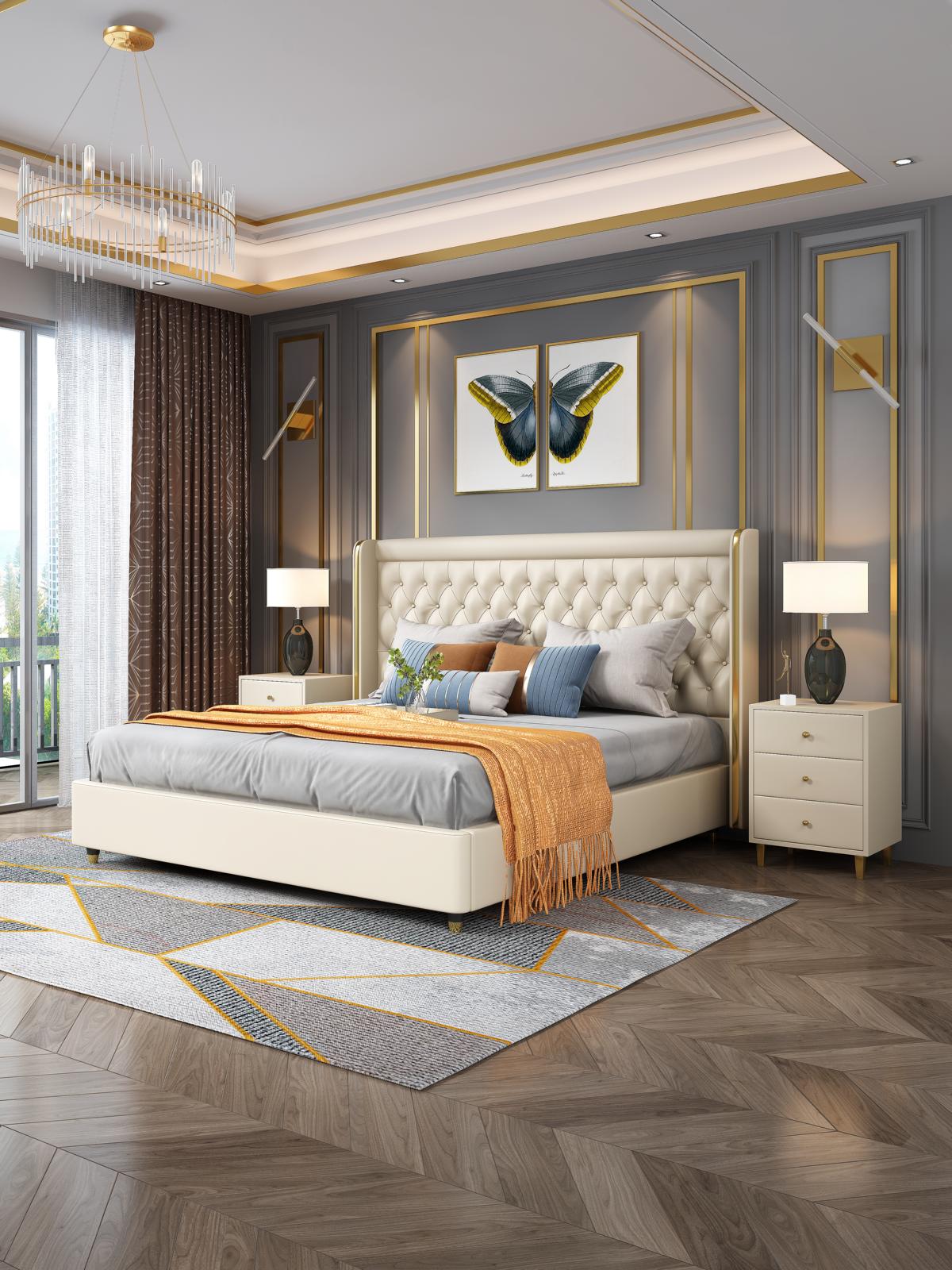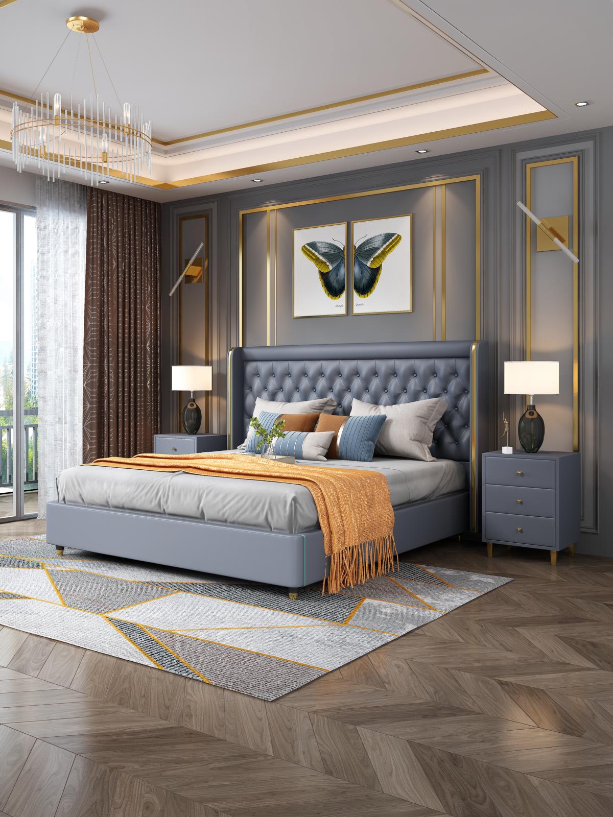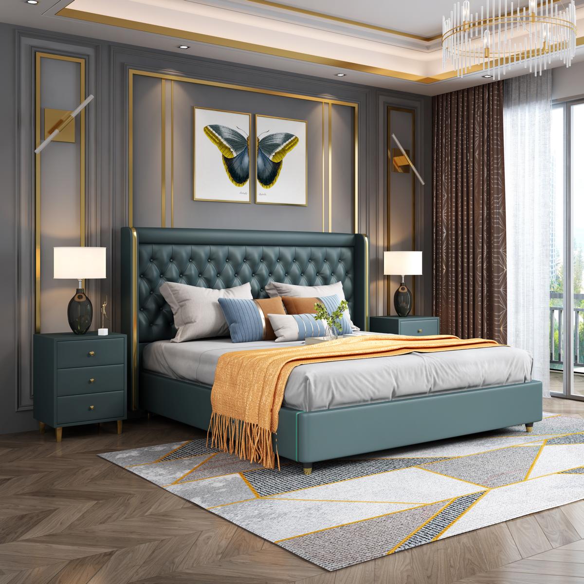 Schlafzimmer Bett Nachttische 3 tlg. Set Design Deko Luxus Betten Leder