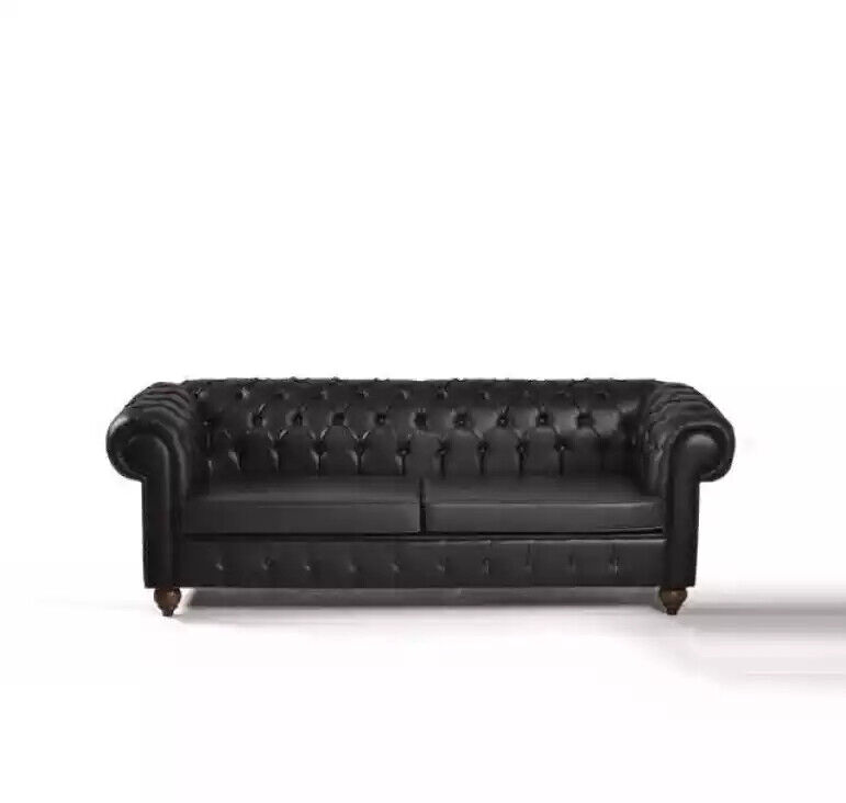 Schwarzer Chesterfield Dreisitzer Büroeinrichtung Couch Luxus Sitzer