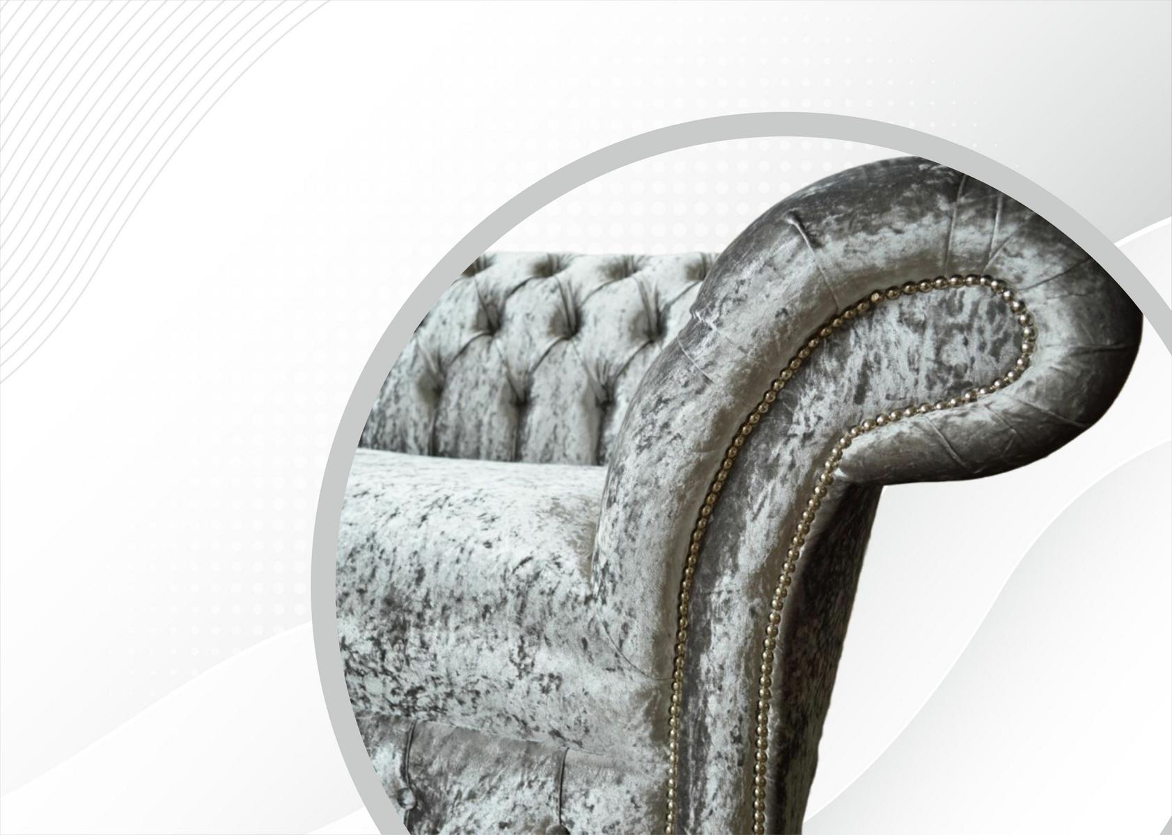 Sofa 2 Sitzer Chesterfield Couch Polster Samt Stoff Zweisitzer Samt Grau Silber