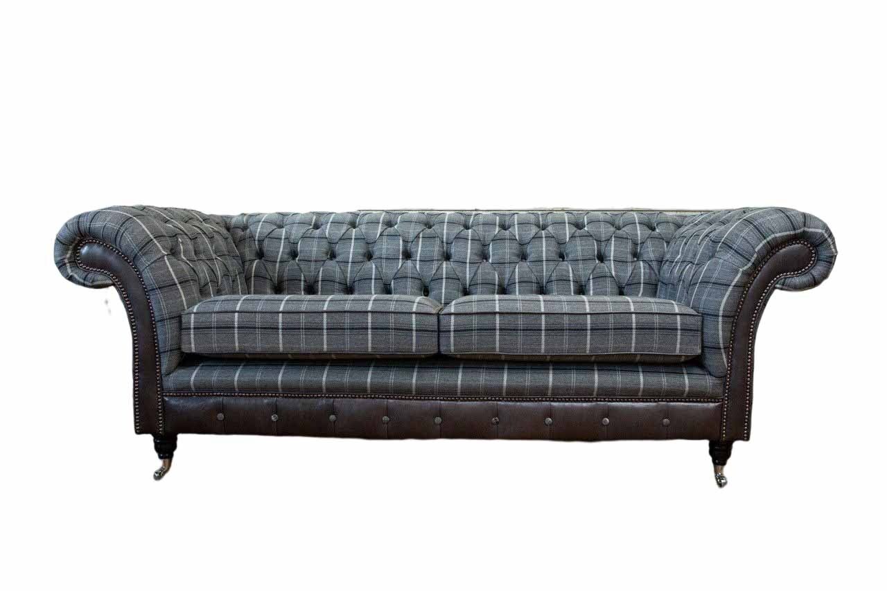 Sofa 3 Sitz Sofas Textil Couchen Design Möbel Dreisitzer Grau Chesterfield