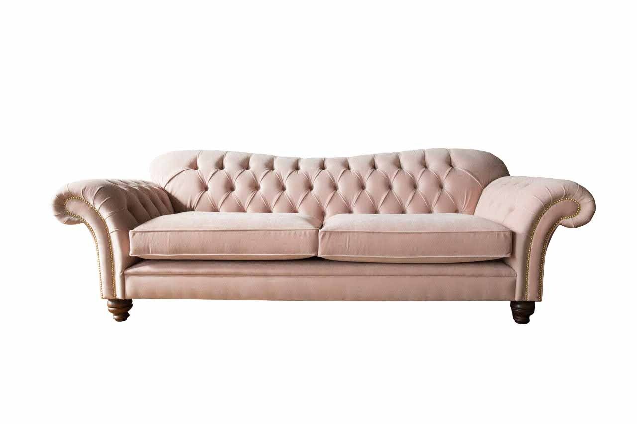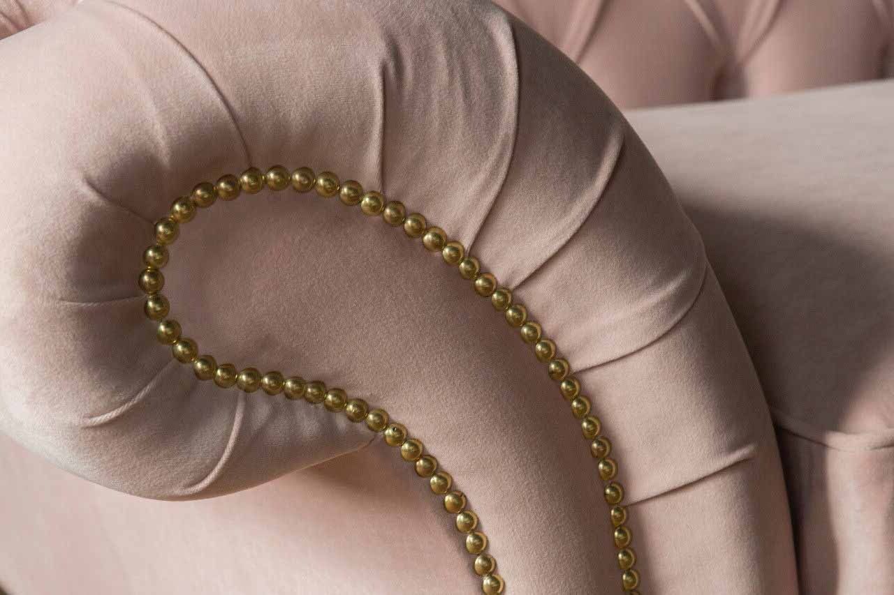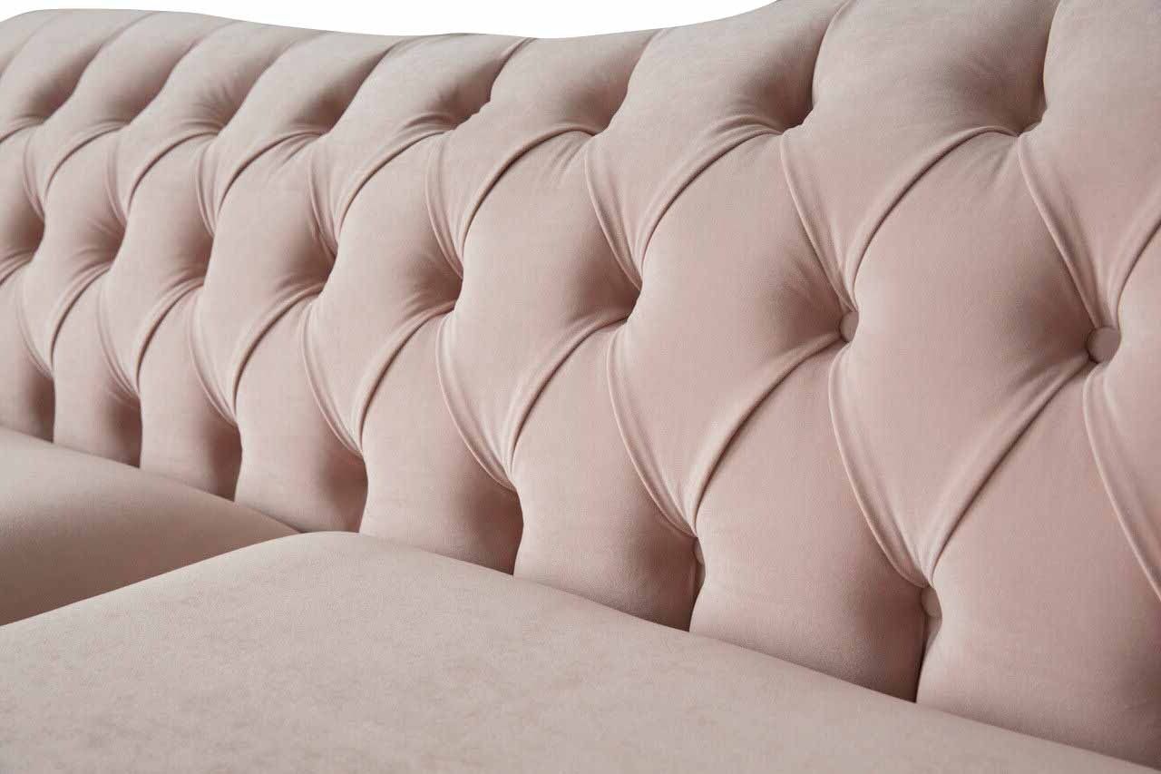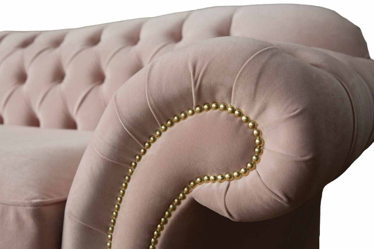 Sofa 3 Sitzer Chesterfield Couch Sitz Textil Stoff Couchen Rosa Polster