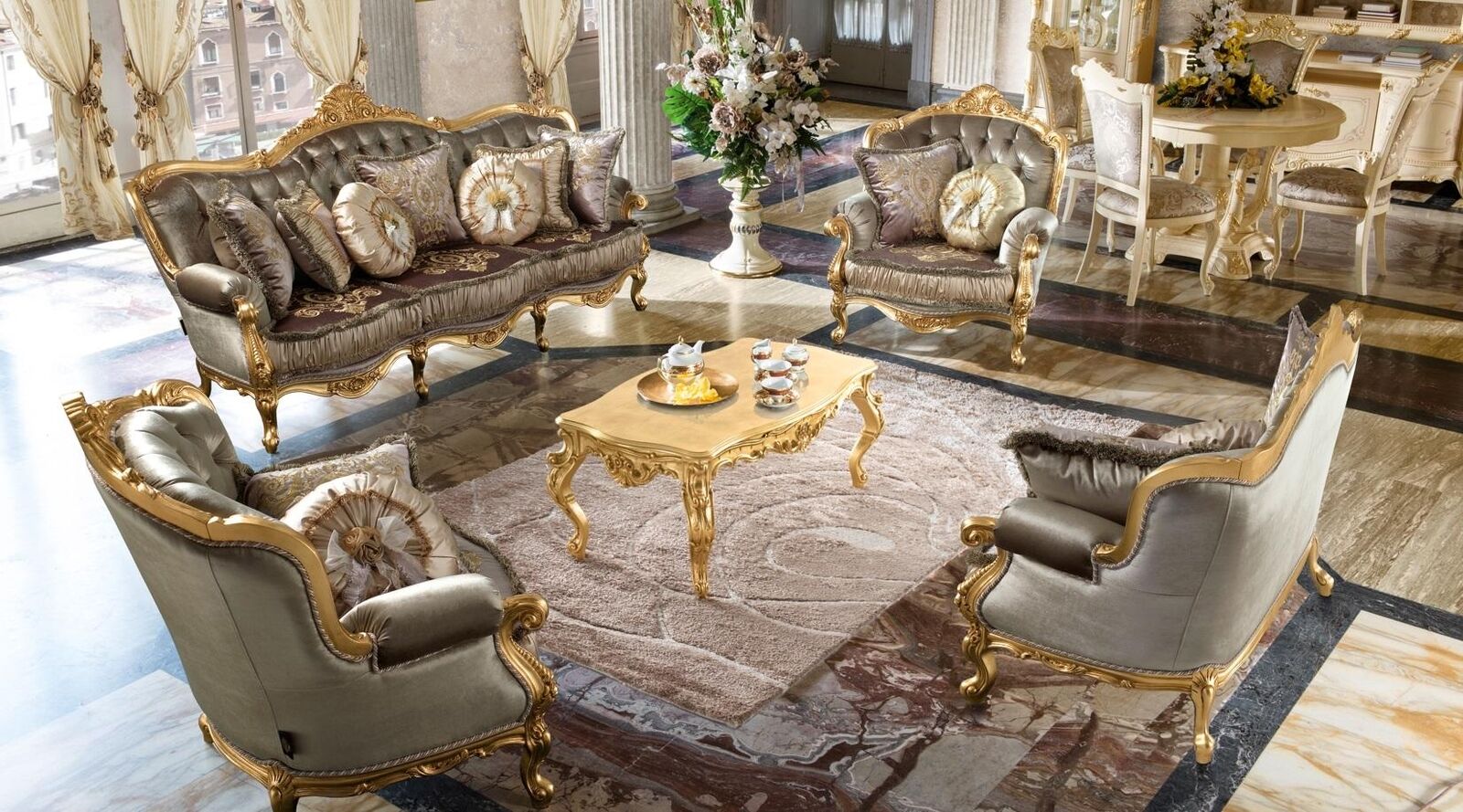 Entspannen Sie stilvoll mit der luxuriösen Sofa Sofagarnitur 3 2 1 1 Sitzer Relax Couch Polstergarnitur Designer NeuTextil vom renommierten Hersteller Mobilpiu Luxury aus Italien. Diese hochwertige Garnitur besteht aus einem großzügigen 3-Sitzer, einem gemütlichen 2-Sitzer sowie zwei bequemen 1-Sitzern, alle mit erstklassigem Textilbezug. Die Maße der Sofagarnitur sind perfekt aufeinander abgestimmt und bieten Ihnen höchsten Sitzkomfort. Der 3-Sitzer misst ca. 232 x 92 x 110 cm, der 2-Sitzer ca. 184 x 92 x 110 cm und die 1-Sitzer jeweils ca. 124 x 106 x 110 cm. Das edle Design in der abgebildeten Farbe verleiht Ihrem Wohnzimmer eine elegante Note. Die solide Holzkonstruktion sorgt für Stabilität und Langlebigkeit. Erleben Sie italienische Handwerkskunst und holen Sie sich mit dieser exquisiten Sofagarnitur ein Stück italienisches Flair nach Hause. Gönnen Sie sich Luxus und Komfort mit dieser traumhaften Polstergarnitur!