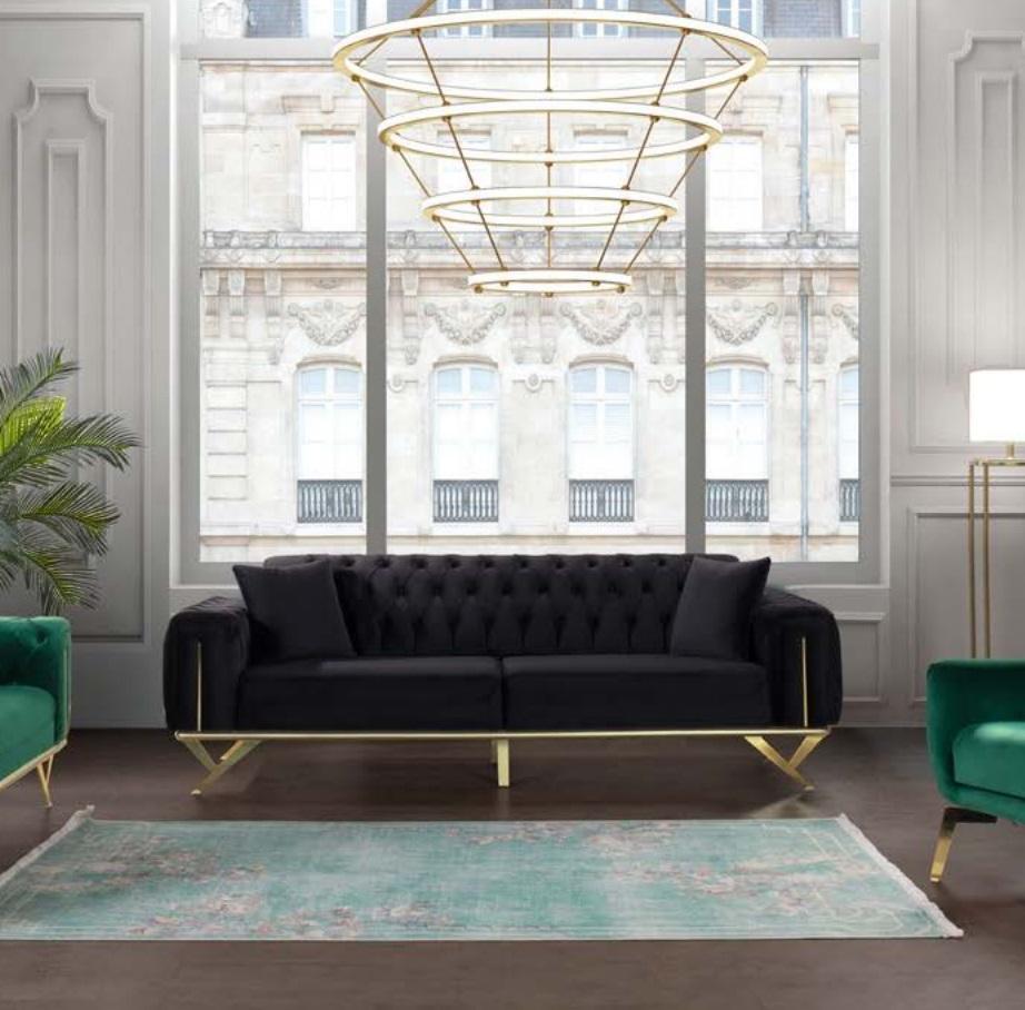 Sofa, Sofagarnitur, Dreisitzer-Sofa, Sessel, Edelstahlelemente