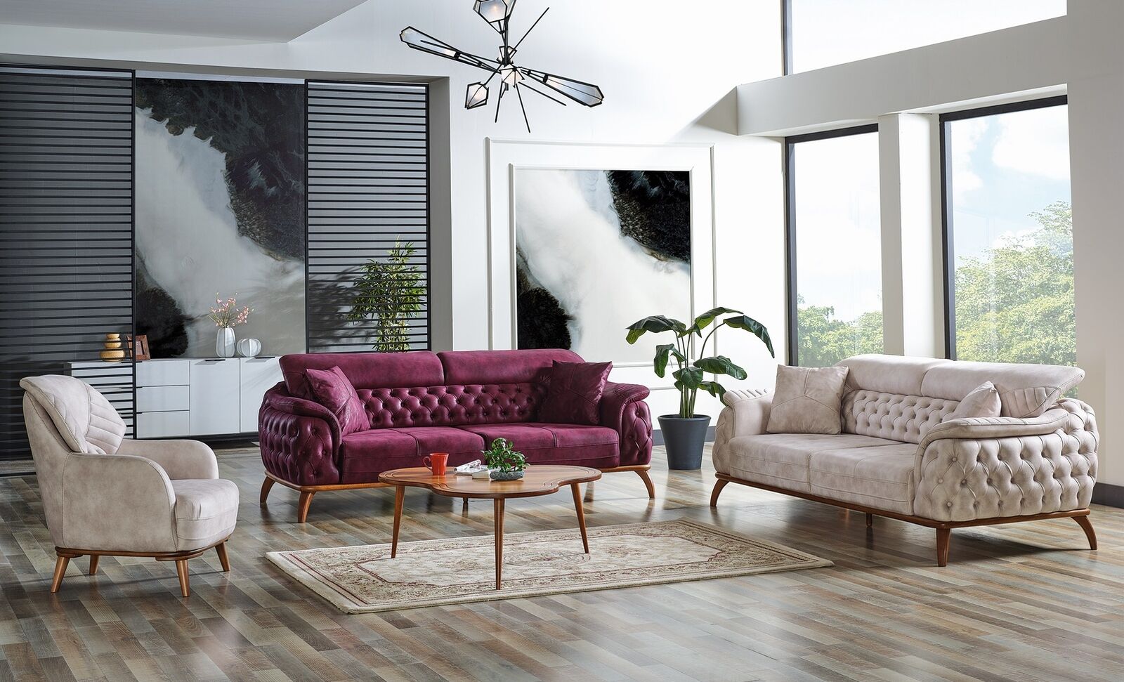 Sofagarnitur 3+3+1 Sitzer Chesterfield Modern Stil Garnitur Set 3tlg. Sofa Relax