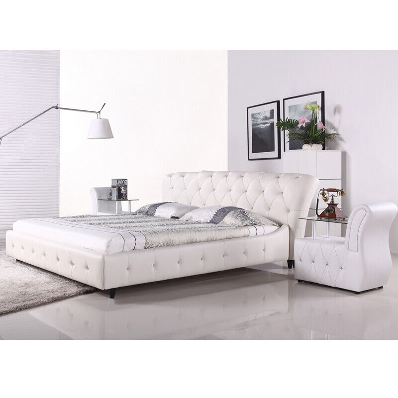 Weißes Gepolstertes Designer Chesterfield Bett Schlafzimmer Textil Möbel