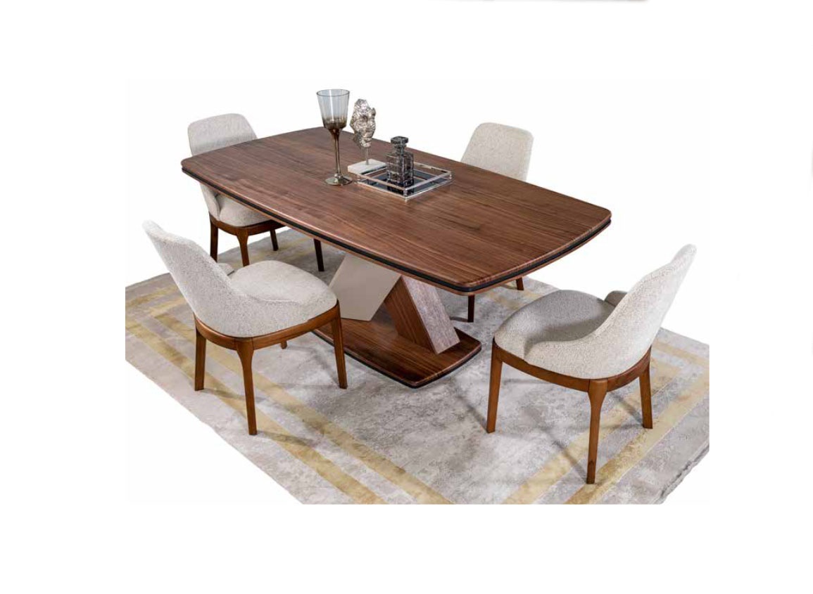 Erwecken Sie Ihr Esszimmer zum Leben mit unserer Braun-Grauen Esszimmer Garnitur Luxus Esstisch 4x Stühle Essgruppe Set! Dieses Set besticht durch ein modernes Design und besteht aus einem großzügigen Esstisch und vier stilvollen Stühlen. Der Esstisch hat die Maße ca. 200 x 100 x 78 cm, während die Stühle ca. 70 x 60 x 110 cm messen. Hergestellt aus hochwertigem Holz, verleiht dieses Esszimmer-Set Ihrem Zuhause einen Hauch von Luxus. Bringen Sie Funktionalität und Eleganz in Ihr Esszimmer mit diesem exquisiten Set!