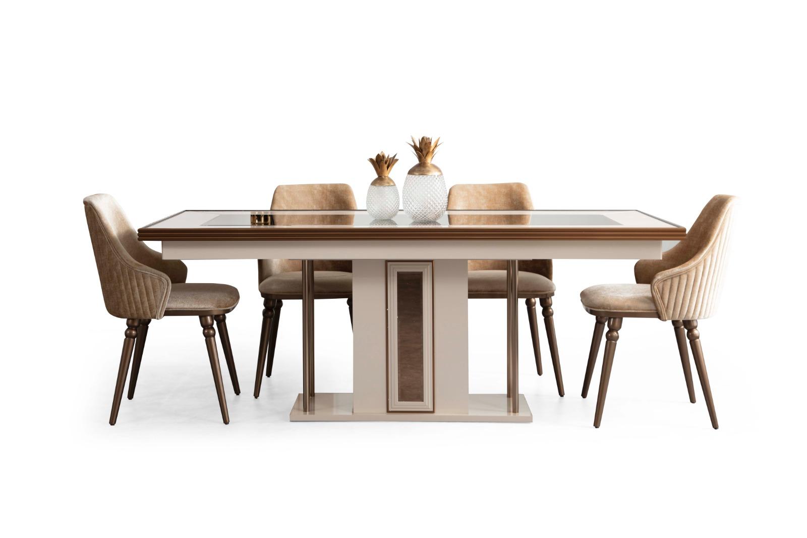 Entdecken Sie das Esszimmer Set 4x Lehnstühle Esstisch Design Möbel Essgruppe Stuhl 5tlg. von B2B Moebel! Dieses moderne Set besteht aus einem Esstisch mit den Maßen ca. 203 x 97 x 78 cm und vier Stühlen mit den Maßen ca. 86 x 83 x 70 cm. Die Kombination aus Holz, Metall und Textil verleiht diesem Ensemble eine zeitgemäße Eleganz. Verleihen Sie Ihrem Esszimmer mit diesem Set einen Hauch von Stil und Komfort. Bestellen Sie jetzt und bringen Sie frischen Wind in Ihre Einrichtung!