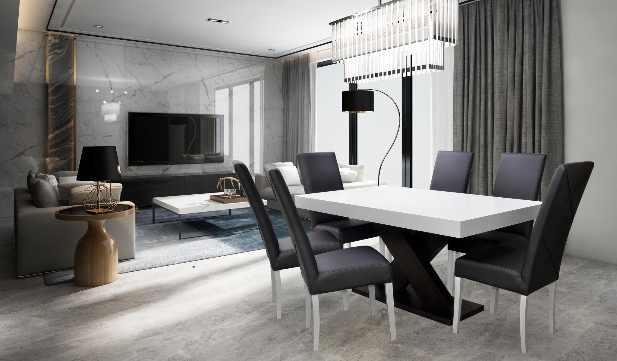 Entdecken Sie das moderne 7-teilige Esszimmer-Set von B2B Moebel! Dieses stilvolle Set beinhaltet eine Vitrine, einen Esstisch, und 6 Stühle - alles, was Sie für Ihr Esszimmer benötigen. Der Tisch hat eine Größe von ca. 90 x 160 cm und kann auf ca. 90 x 210 cm ausgezogen werden, um zusätzlichen Platz zu schaffen. Die Stühle haben eine Höhe von ca. 105 cm und eine Sitzhöhe von ca. 50 cm. Das Set ist in der Farbe wie abgebildet erhältlich, aber auf Anfrage sind auch andere Farben möglich. Optional können Sie gegen einen Aufpreis von 50,00 EUR eine Änderung der Farbe (Holz oder Textil) vornehmen lassen. Hergestellt aus hochwertigem Holz (Funiert), bietet dieses Esszimmer-Set nicht nur modernes Design, sondern auch Langlebigkeit. Bringen Sie Stil und Eleganz in Ihr Esszimmer mit diesem wunderschönen Esszimmer-Set von B2B Moebel!