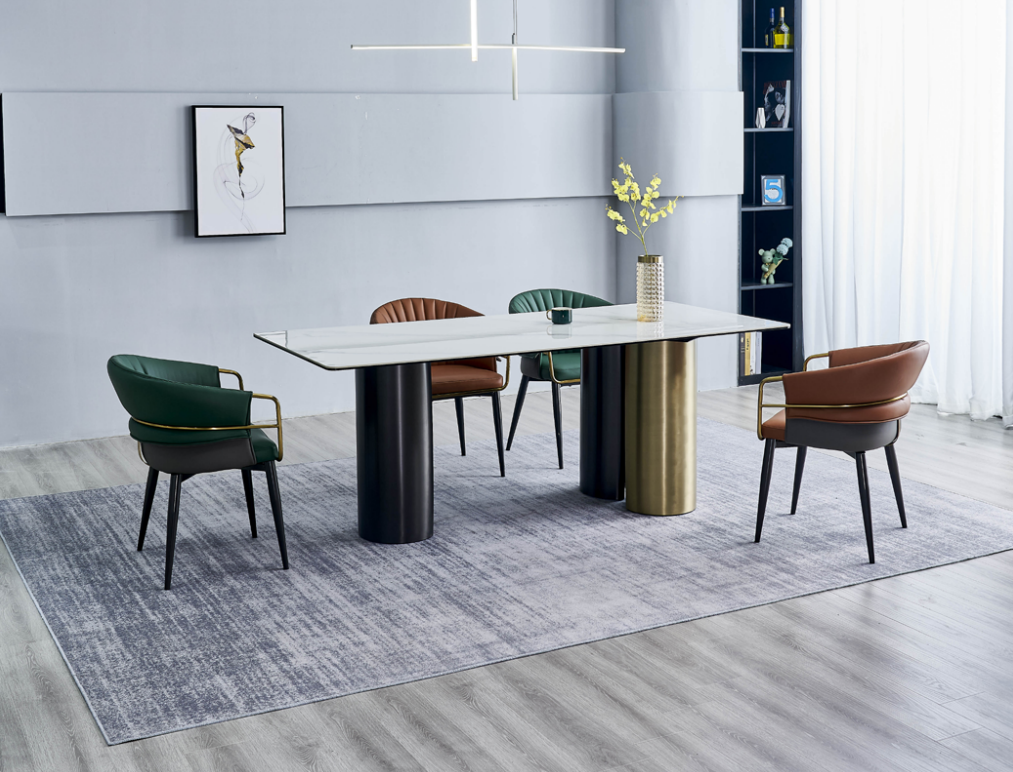 Entdecken Sie die Esszimmergruppe Designer Garnitur bestehend aus einem Esstisch und 4 Kunstleder Stühlen! Dieses 5-teilige Set bietet modernes Design und hochwertige Materialien wie Holz, Kunstleder und Marmorimitation. Der Esstisch hat Maße von ca. 160 x 80 x 77 cm und die Stühle ca. 60 x 50 x 100 cm. Perfekt für Ihr Esszimmer! Holen Sie sich jetzt diese stilvolle Essgruppe von B2B Moebel!