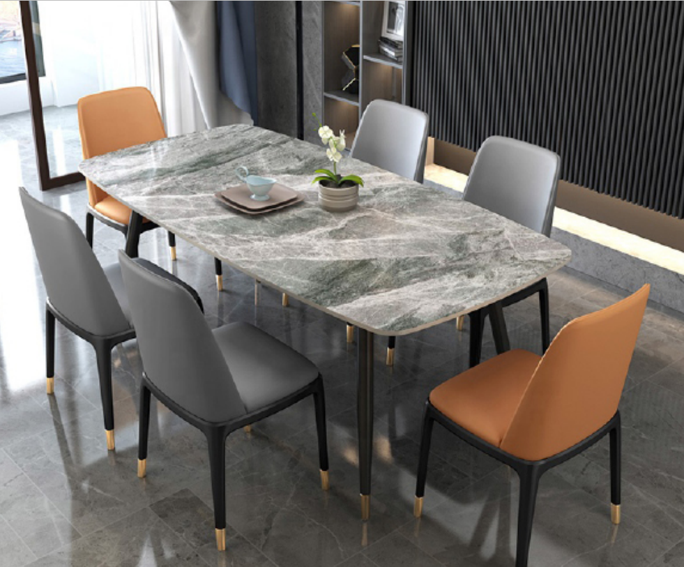 Entdecken Sie unsere Luxuriöse Essgruppe bestehend aus einem eleganten Esstisch und 6 Designer Kunstleder Stühlen. Der Esstisch besticht mit Maßen von ca. 140 x 80 x 75 cm und ist in zusätzlichen Größen erhältlich. Die stilvollen Stühle sind ca. 60 x 50 x 100 cm groß und bieten höchsten Sitzkomfort. Hergestellt aus hochwertigen Materialien wie Holz, Kunstleder und Marmorimitation, verspricht dieses Set Langlebigkeit und Eleganz in Ihrem Esszimmer. Bringen Sie Luxus in Ihr Zuhause mit B2B Moebel!