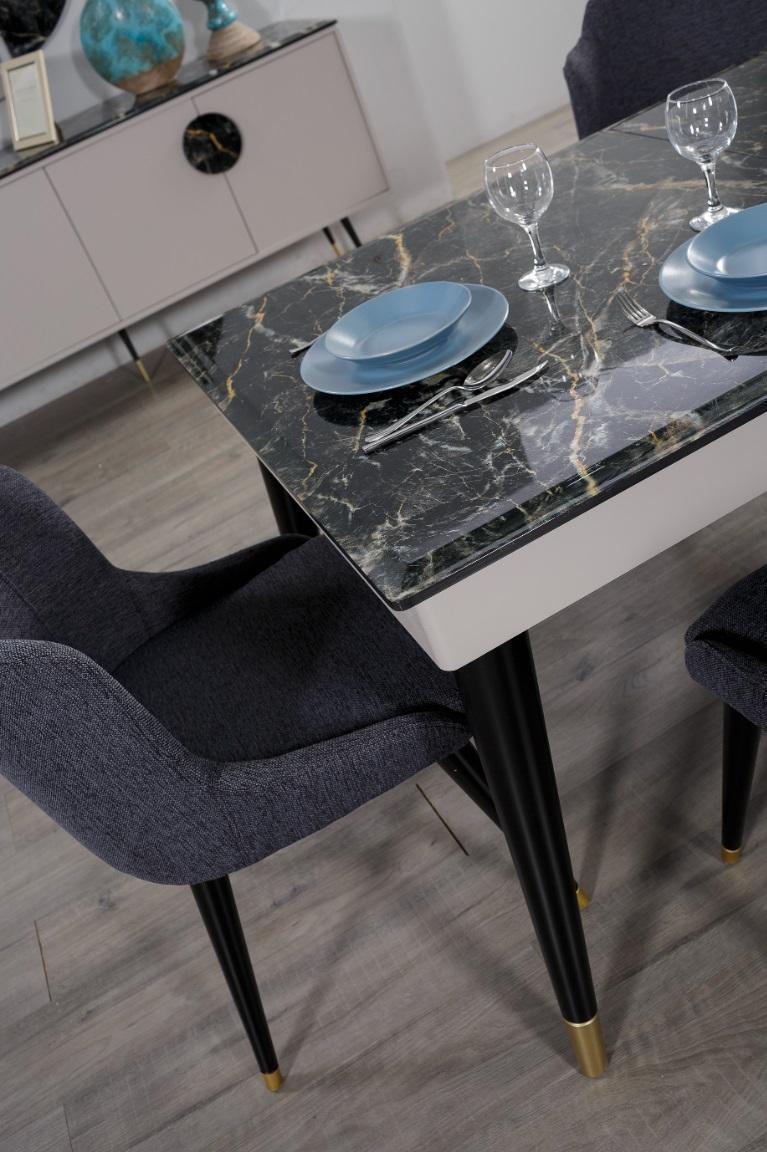 Erwecken Sie Ihr Esszimmer zum Leben mit unserem Luxus Esszimmer Tisch Design 4x Stühle Essgruppe Lehnstühle Set Garnitur Möbel. Mit einem Esstisch aus Holz und vier passenden Stühlen in eleganter Ausführung wird Ihr Essbereich zu einem wahren Highlight in Ihrem Zuhause. Die Maße des Esstisches betragen ca. 160 x 90 x 77 cm und die Stühle haben die Maße ca. 60 x 58 x 80 cm. Die Farbe ist wie abgebildet, aber andere Farben sind auf Anfrage erhältlich. Holen Sie sich jetzt dieses moderne Esszimmer Set und lassen Sie Ihr Zuhause in neuem Glanz erstrahlen!