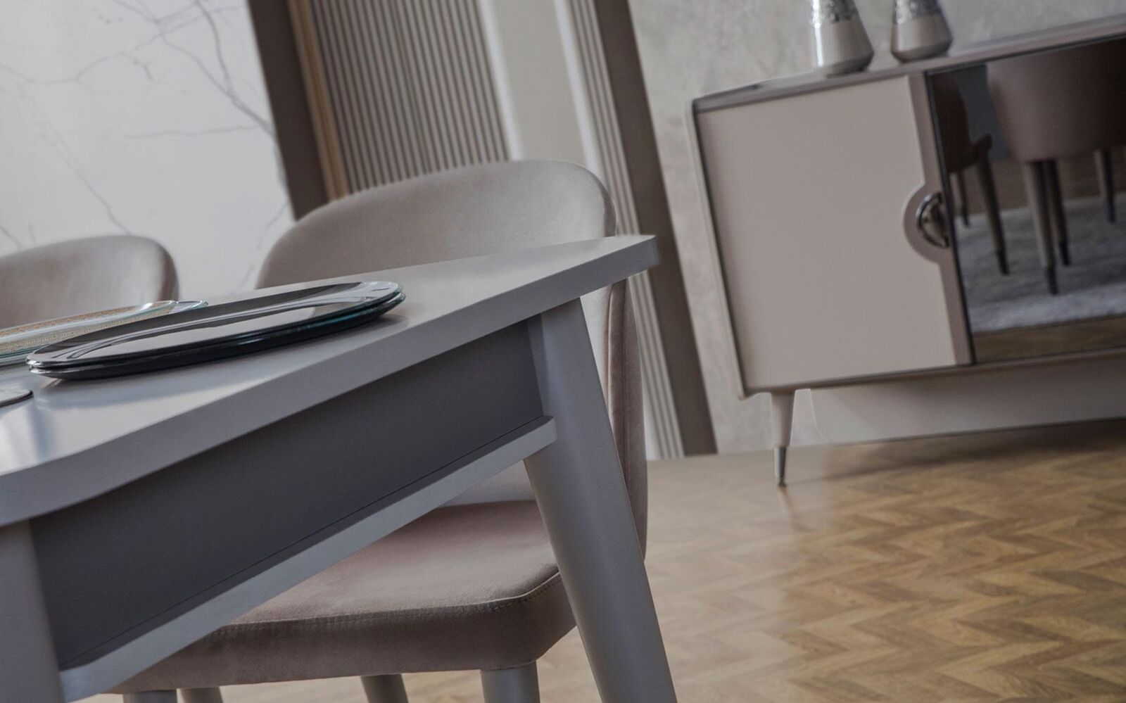 Grauer Esstisch Designer Esszimmer Möbel Ausziehbarer Holz Tisch Neu
