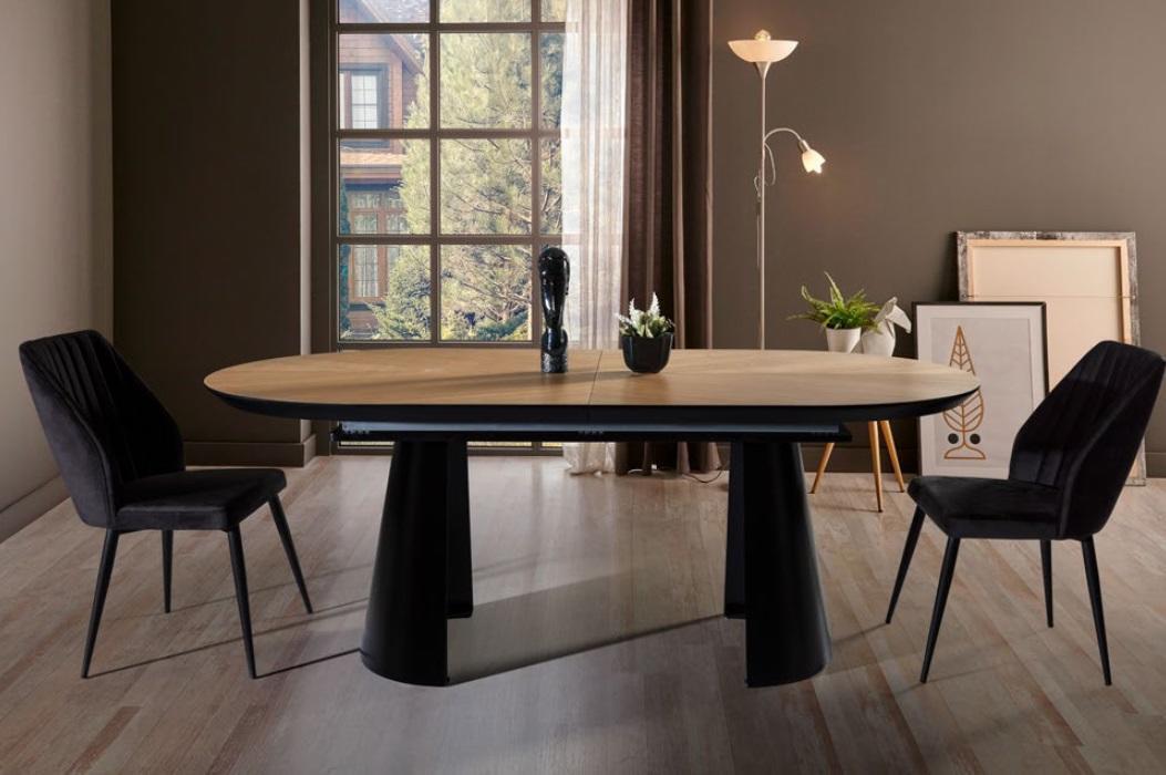 Entdecken Sie unseren ovalen ausziehbaren Esstisch in Braun aus MDF Holz und Metall - perfekt für Ihr Esszimmer! Mit Maßen von ca. 206 x 103 cm (L x B) und einer Höhe von 79 cm bietet dieser Tisch genügend Platz für gemütliche Mahlzeiten mit Familie und Freunden. Der ausziehbare Tisch kann um jeweils 50 cm erweitert werden, um zusätzliche Gäste willkommen zu heißen. Holen Sie sich jetzt diesen stilvollen Küchentisch von B2B Moebel!