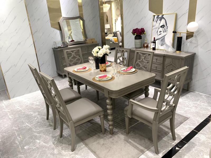 Entdecken Sie die neue Esszimmer Garnitur im antiken Stil! Dieses 6-teilige Set besteht aus einem Esstisch, 6 Stühlen und Hockern, die Ihr Esszimmer in ein elegantes Ambiente verwandeln. Der Tisch misst ca. 160 x 90 x 78 cm, während die Stühle jeweils ca. 55 x 60 x 106 cm groß sind. Hergestellt aus hochwertigem Holz und in der abgebildeten Farbe erhältlich (andere Farben auf Anfrage), ist dieses Set die perfekte Kombination aus Stil und Funktionalität. Bringen Sie mit dieser Essgarnitur von B2B Moebel einen Hauch von Antike in Ihr Zuhause!
