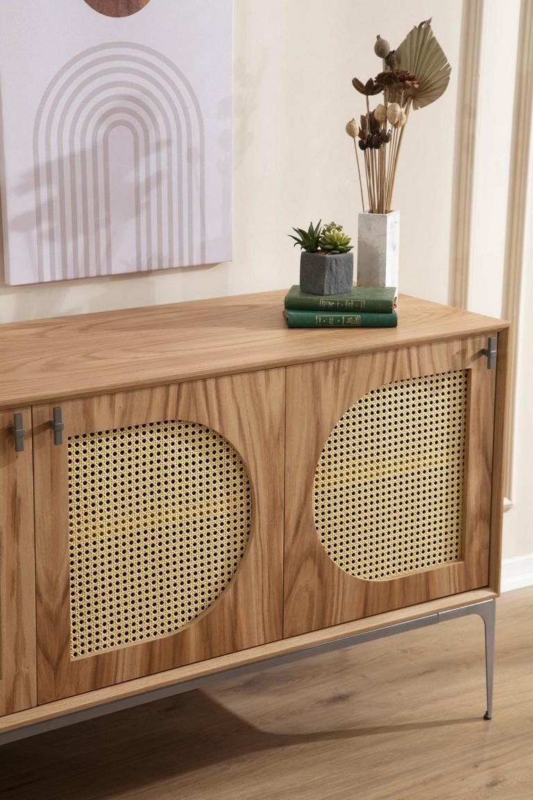Verschönern Sie Ihr Esszimmer mit diesem hochwertigen Esszimmer-Set aus Holz! Das Set enthält einen Esstisch, ein Sideboard, einen Spiegel und 4 Stühle - alles, was Sie brauchen, um Ihren Essbereich stilvoll einzurichten. Der Esstisch misst ca. 180 x 90 x 75 cm, die Stühle ca. 42 x 44 x 80 cm und das Sideboard ca. 200 x 50 x 80 cm. Der Spiegel hat einen Durchmesser von ca. 70 x 70 cm. In der Farbe wie abgebildet und aus hochwertigem Holz gefertigt, verleiht dieses Set Ihrem Esszimmer einen modernen und eleganten Look. Bringen Sie Ihren Essbereich auf ein neues Level mit dieser 7-teiligen Esszimmergarnitur von B2B Moebel!