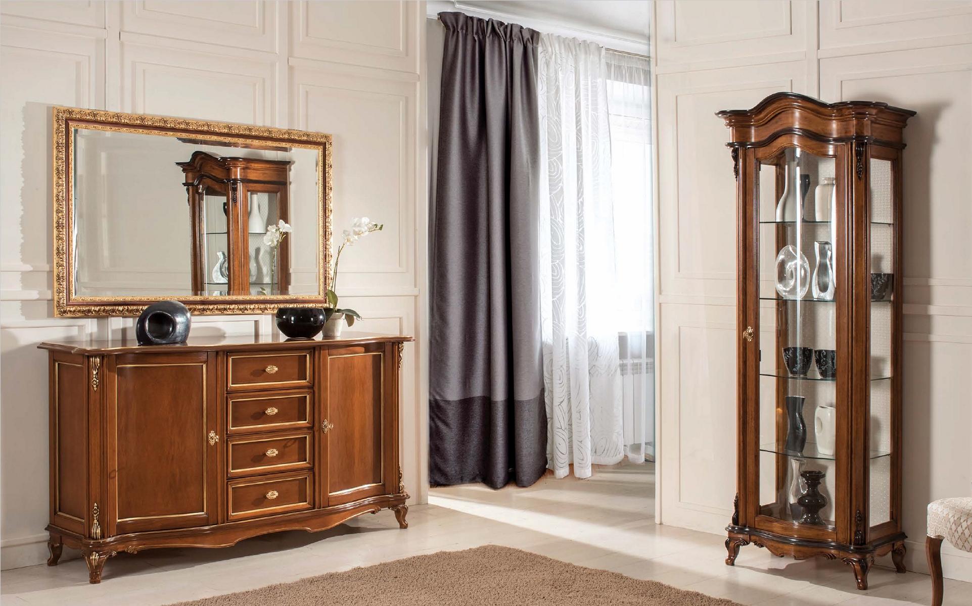 Esszimmer Garnitur Vitrine Schrank Kommode Spiegel Anrichte Italien Möbel 3tlg