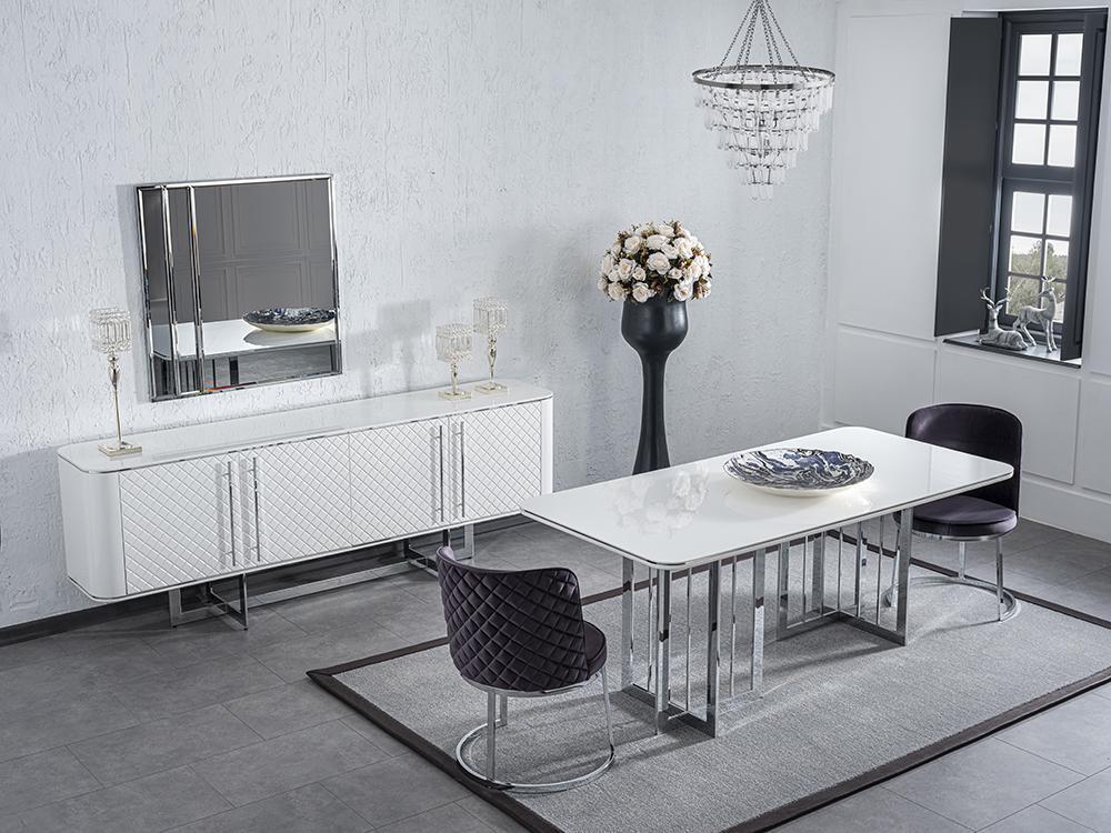 Esszimmer Möbel Luxus Komplett Esstisch Sideboard mit Spiegel Design 4x Stühle
