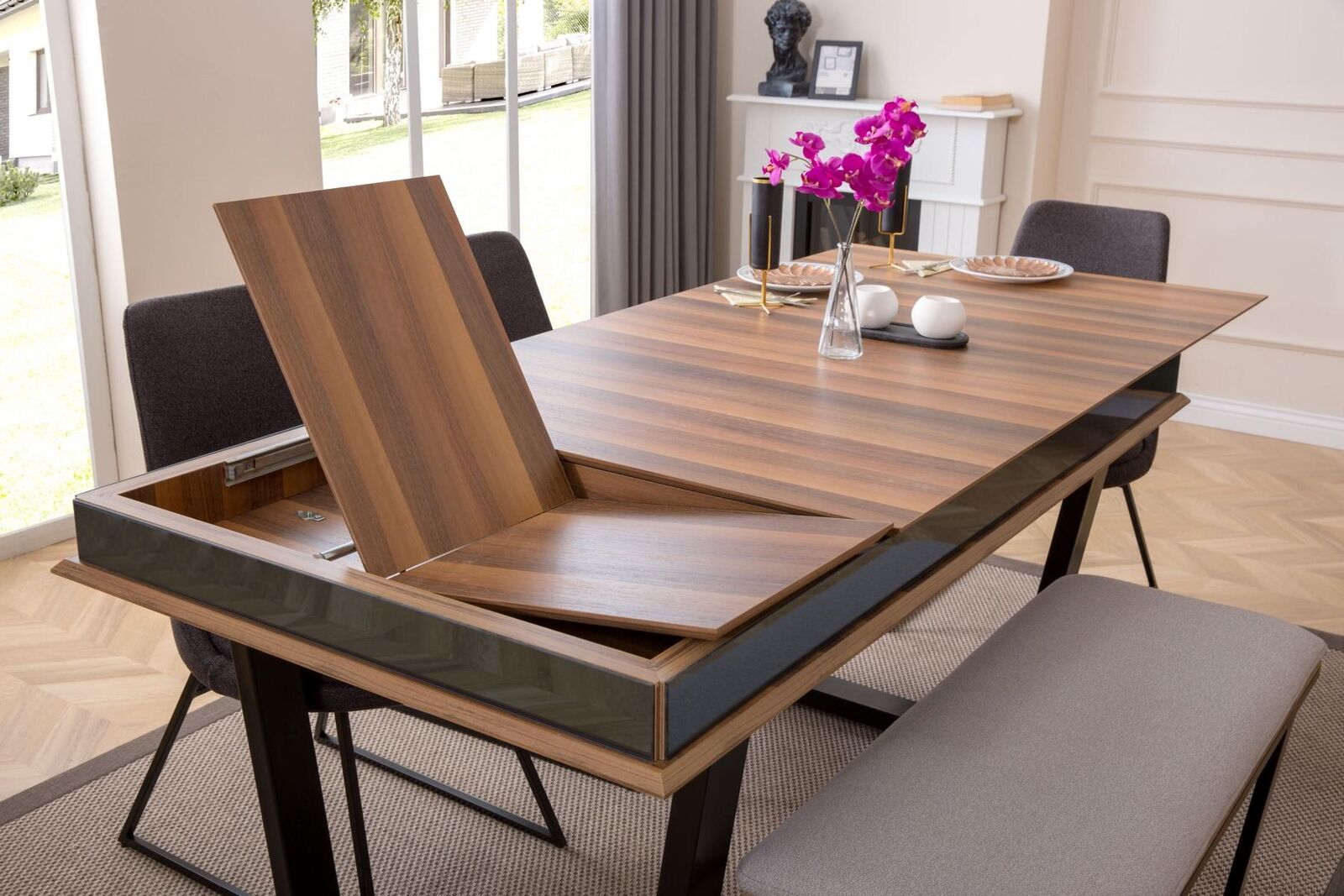 Entdecken Sie unser stilvolles Esszimmer Set bestehend aus einem Esstisch, 4 Stühlen, einer Bank, einem Sideboard und sogar 3 Spiegeln! Dieses 10-teilige Ensemble bietet Ihnen alles, was Sie für Ihr Esszimmer benötigen. Der Esstisch misst ca. 160 x 90 x 80 cm und wird von 4 passenden Stühlen begleitet, die jeweils ca. 50 x 60 x 90 cm groß sind. Die dazu passende Bank misst ca. 140 x 45 x 45 cm. Ein geräumiges Sideboard mit den Maßen ca. 210 x 50 x 80 cm bietet Ihnen zusätzlichen Stauraum. Die Farbe dieses Sets ist wie abgebildet, aber auf Anfrage sind auch andere Farben erhältlich. Hergestellt aus hochwertigen Materialien wie Holz, Textil, Glas und Edelstahl überzeugt dieses Set nicht nur durch sein modernes Design, sondern auch durch seine Qualität. Perfekt für ein zeitgemäßes Esszimmer, verleihen Sie mit diesem Set Ihrem Essbereich einen Hauch von Eleganz. Bestellen Sie jetzt und gestalten Sie Ihr Esszimmer neu!