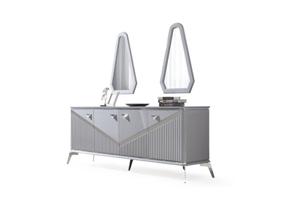 Graues moderner Esszimmer Set 4x Stuhl Spiegel Sideboard Regal 9tlg