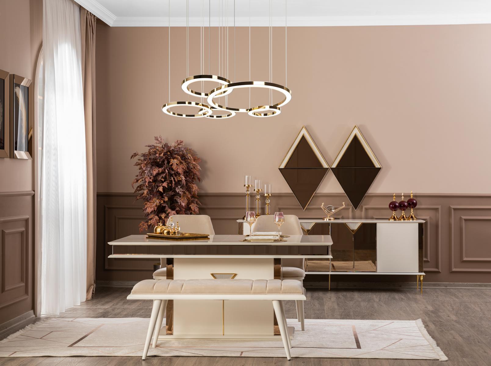 Esszimmer Tisch 4x Stühle Bank Set Essgruppe Modern 7tlg Beige Design
