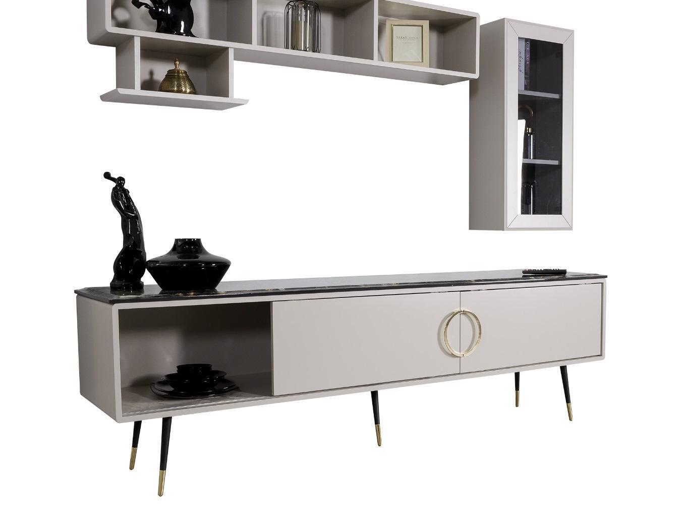 Entdecken Sie die Komplette Essgarnitur 7tlg. Esszimmer Anrichte Set Modern Tisch 4x Stühle rtv von B2B Moebel! Dieses Set besticht durch sein modernes Design und seine hochwertige Verarbeitung. Der Esstisch hat die Maße ca. 160 x 90 x 77 cm und ist ausziehbar bis ca. 200 x 90 x 77 cm. Die 4 Stühle sind ca. 60 x 58 x 80 cm groß und bieten eine bequeme Sitzhöhe von ca. 44 cm. Die Anrichte misst ca. 205 x 48 x 80 cm und das RTV ca. 205 x 48 x 62 cm. In der Farbe wie abgebildet (andere Farben auf Anfrage) wird dieses Set zum Blickfang in Ihrem Esszimmer. Hergestellt aus hochwertigem Holz, überzeugt die Essgarnitur nicht nur durch ihr Aussehen, sondern auch durch ihre Langlebigkeit. Holen Sie sich jetzt die Komplette Essgarnitur 7tlg. von B2B Moebel und verwandeln Sie Ihr Esszimmer in einen modernen und stilvollen Raum!