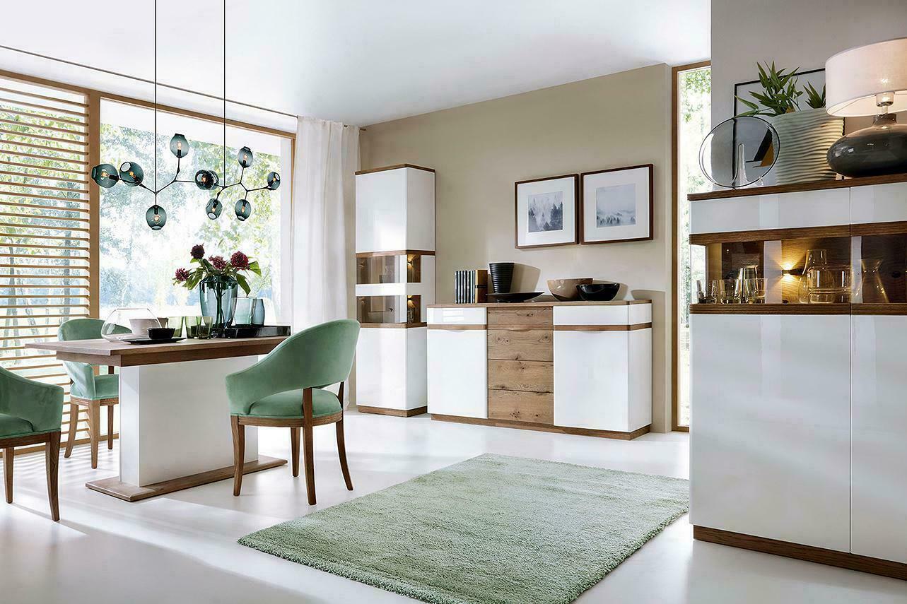 Rückwand & Einlegeböden: MDF (Mitteldichte Holzfaserplatte), furniert & lackiert