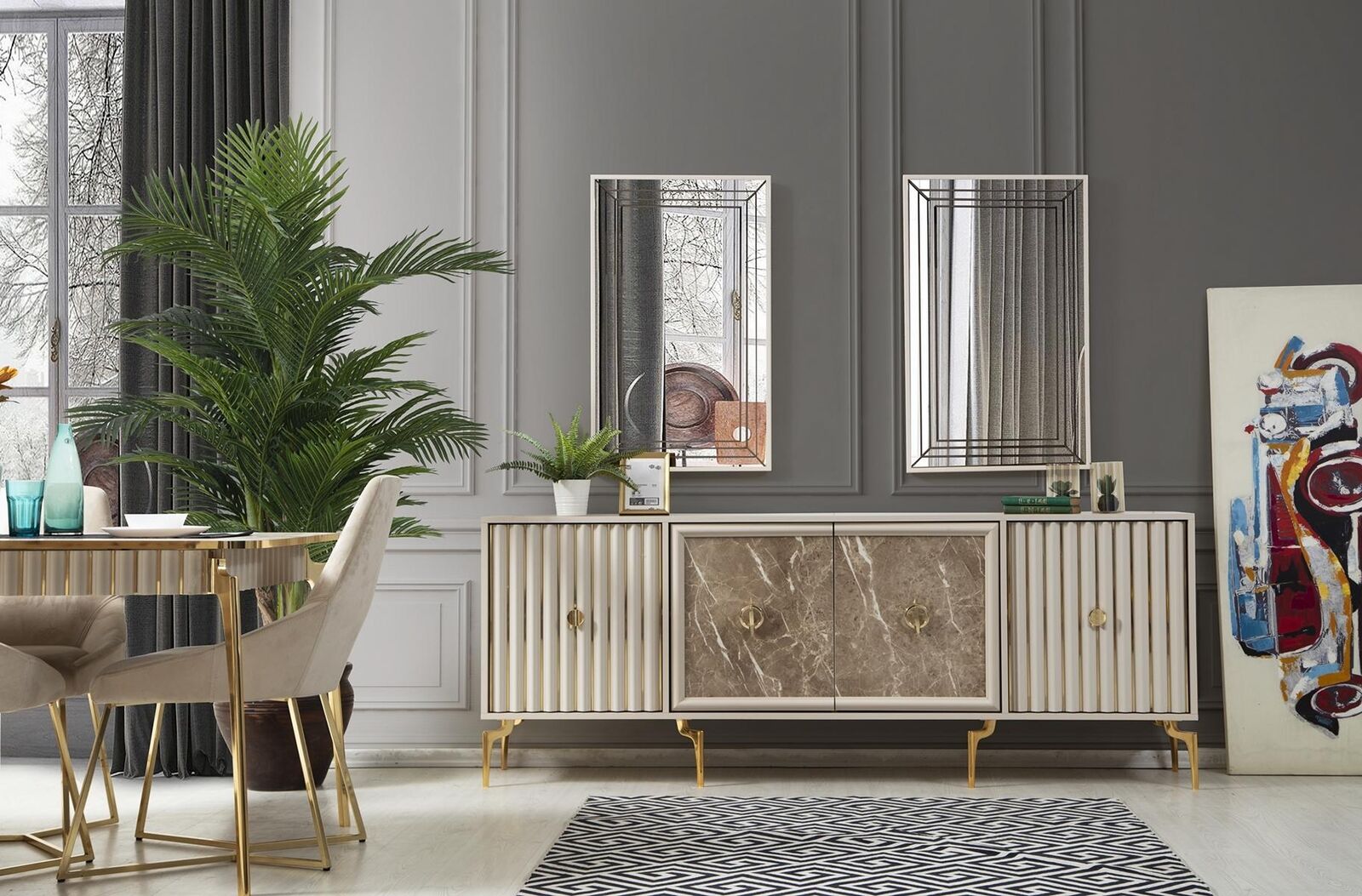 Luxus Esstisch Esszimmer Tisch für 4 Personen Stühle SIdeboard Modern