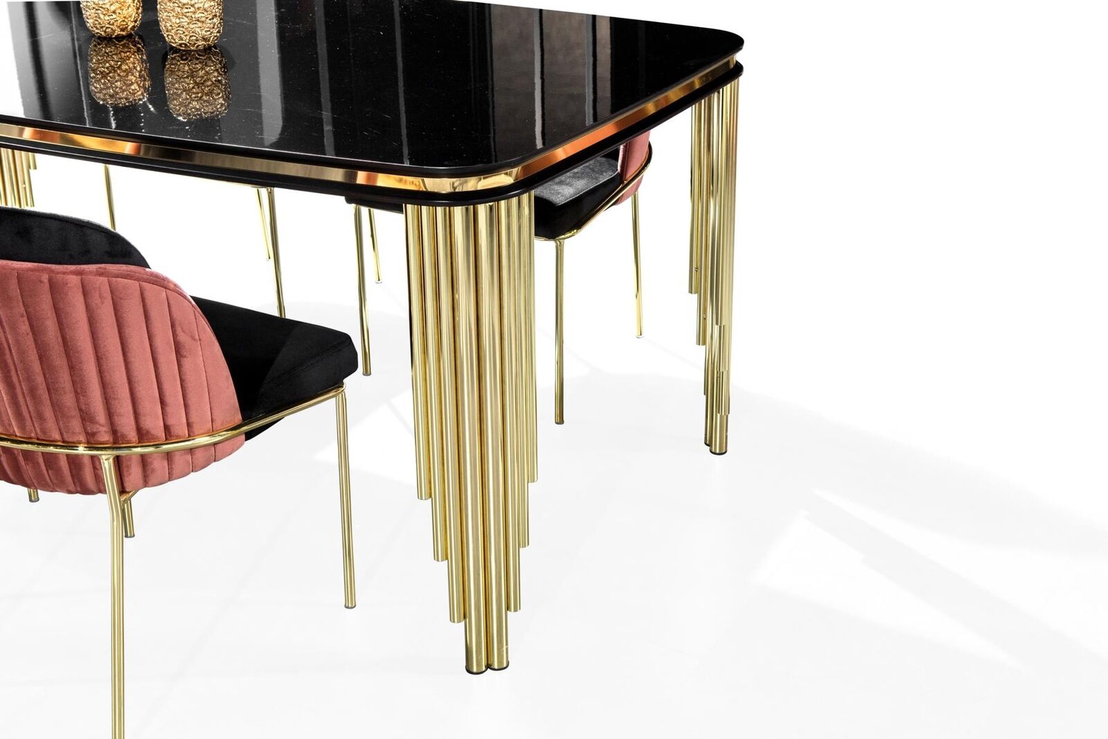 Entdecken Sie unsere moderne Essgruppe aus edlen schwarzen Esszimmermöbeln! Dieses stilvolle Set besteht aus einem großzügigen Esstisch und vier eleganten Stühlen, die perfekt aufeinander abgestimmt sind. Der Esstisch misst ca. 200 x 90 x 82 cm (L x B x H) und die Stühle jeweils ca. 52 x 56 x 90 cm (L x B x H). Hergestellt aus hochwertigem Holz und Edelstahl, bietet diese Essgruppe nicht nur einen ansprechenden Look, sondern auch hohe Qualität. Bestellen Sie jetzt und verleihen Sie Ihrem Esszimmer einen Hauch von Eleganz!